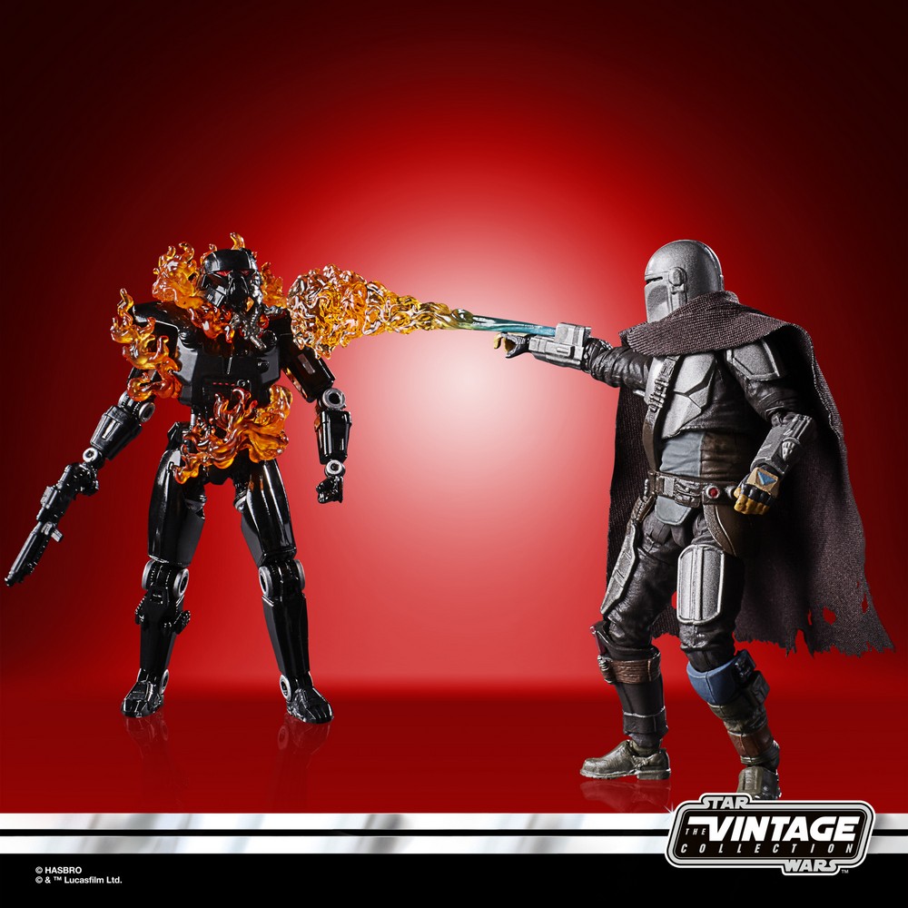 STAR WARS: THE VINTAGE COLLECTION 3.75-INCH scale classic figures and vehicles feature original vintage-inspired packaging and Kenner branding. This STAR WARS: THE VINTAGE COLLECTION THE RESCUE SET multipack is inspired by the daring rescue of Grogu in the STAR WARS: THE MANDALORIAN series. The Mandalorian leads a crew on a rescue mission to Moff Gideon’s ship where a garrison of dark troopers – the advanced droids that captured Grogu – are waiting. Highly poseable with realistic detail, these 3.75-inch-scale figures can be displayed in action figure and vehicle collections. Includes 4 figures (The Mandalorian, Grogu, Moff Gideon and Dark Trooper) and 10 entertainment-inspired accessories.