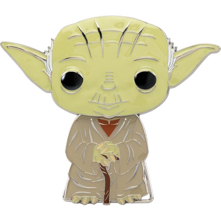 This Star Wars Yoda Large Enamel Pop! Pin measures approximately 4 1/2-inches tall, just like the Pop! Vinyl Figure it’s based on. Not only does the pin have the standard pin backings so you can attach it to bags or a corkboard; it also has a “Funko Crown” pin stand allowing it to stand up for a dynamic display! True to its namesake, the head is raised making it pop from the body. This large Pop! Pin comes packaged in a window display box.