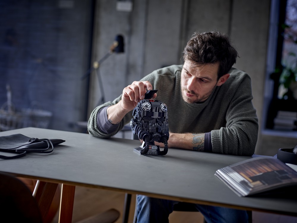 • LEGO® Star Wars™ TIE Fighter Pilot™ Buildable Model Helmet –create the notorious contours of the TIE pilot helmet with LEGO bricks to complete this 18cm tall model and receive the glory of the Empire