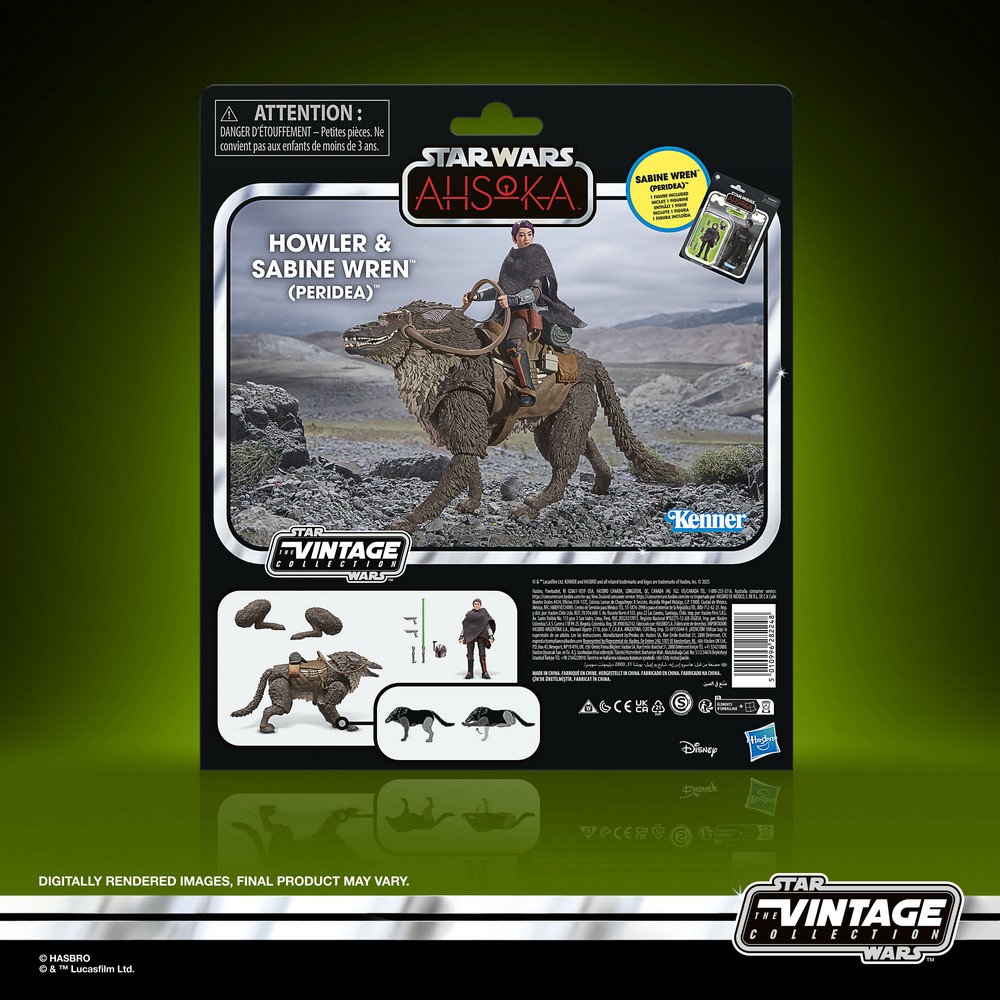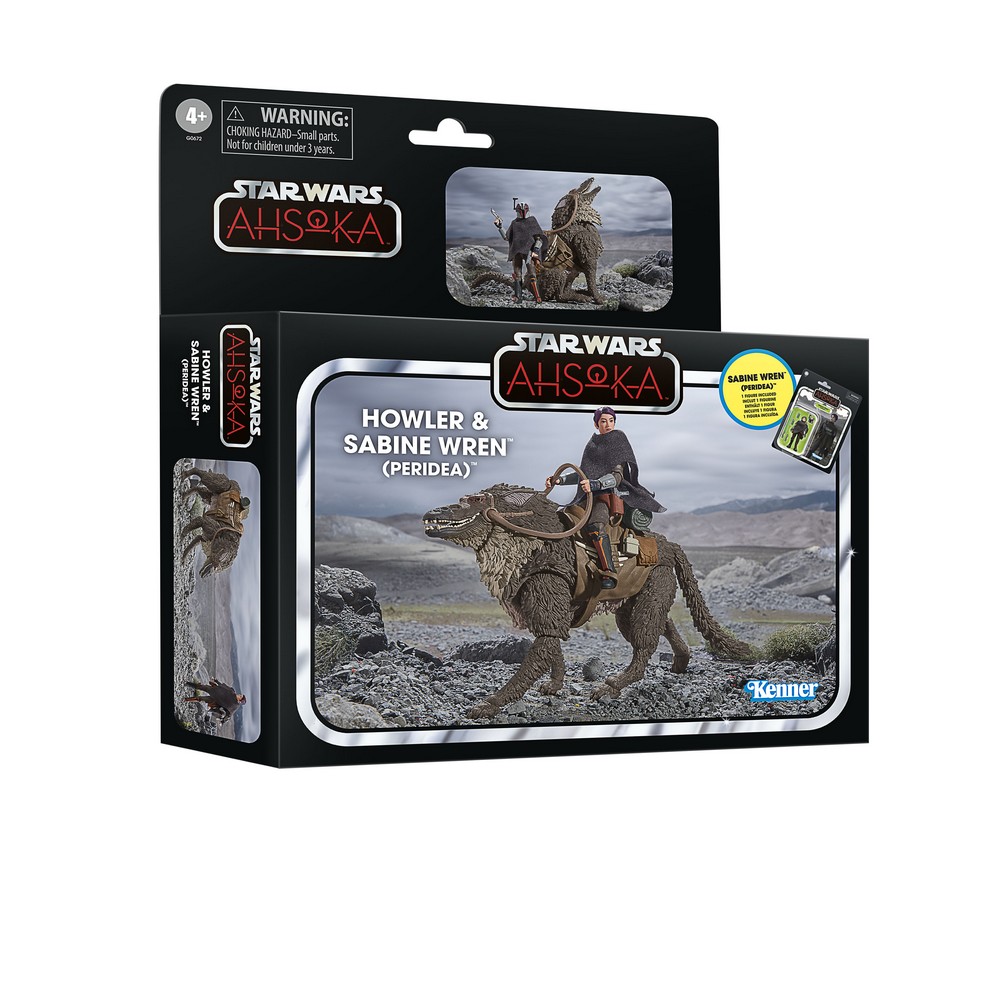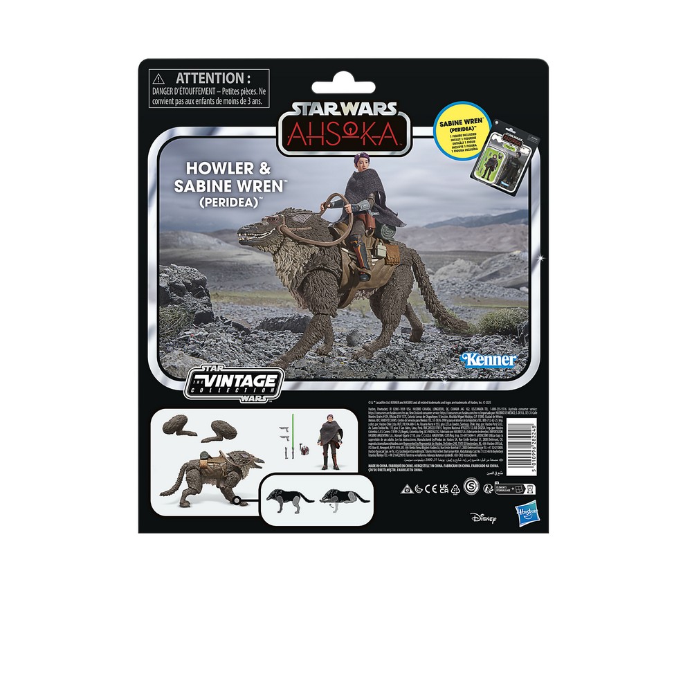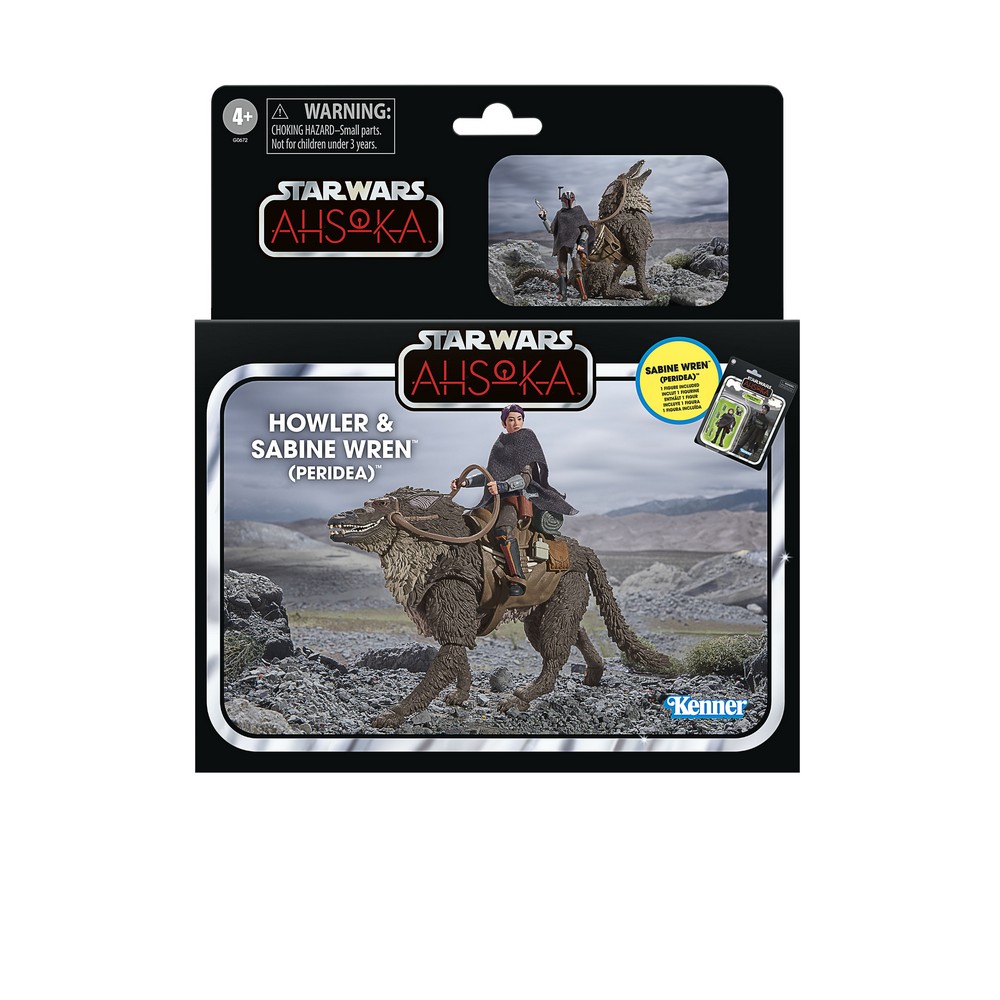 (HASBRO | Ages 4 years & up | Approx. Retail Price: $39.99 | Available: Summer 2025)Sabine Wren fights off bandits with her howler mount as she searches for Ezra Bridger on the stark planet of Peridea. Based on a howler & Sabine Wren from the STAR WARS: AHSOKA live-action series on Disney+, this 3.75-inch action figure set comes with Sabine’s helmet, Lightsaber™ and unlit hilt, 2 blasters, and an extra set of howler legs. Inspired by the original line, these collectibles feature premium detail and design across product and packaging, as well as collector-grade deco that fans have come to know and love.