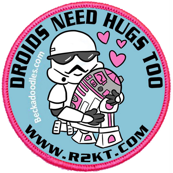 Beckadoodles has amazed the internet with her adorable illustrations from all over the fanverse. When she offered to do a drawing for the KT “Droids Need Hugs” patch series I was blown away. I asked if she could do a plain TK trooper and she delivered a masterpiece in simple, elegant lines that captures the joy of a hug. Nice!
