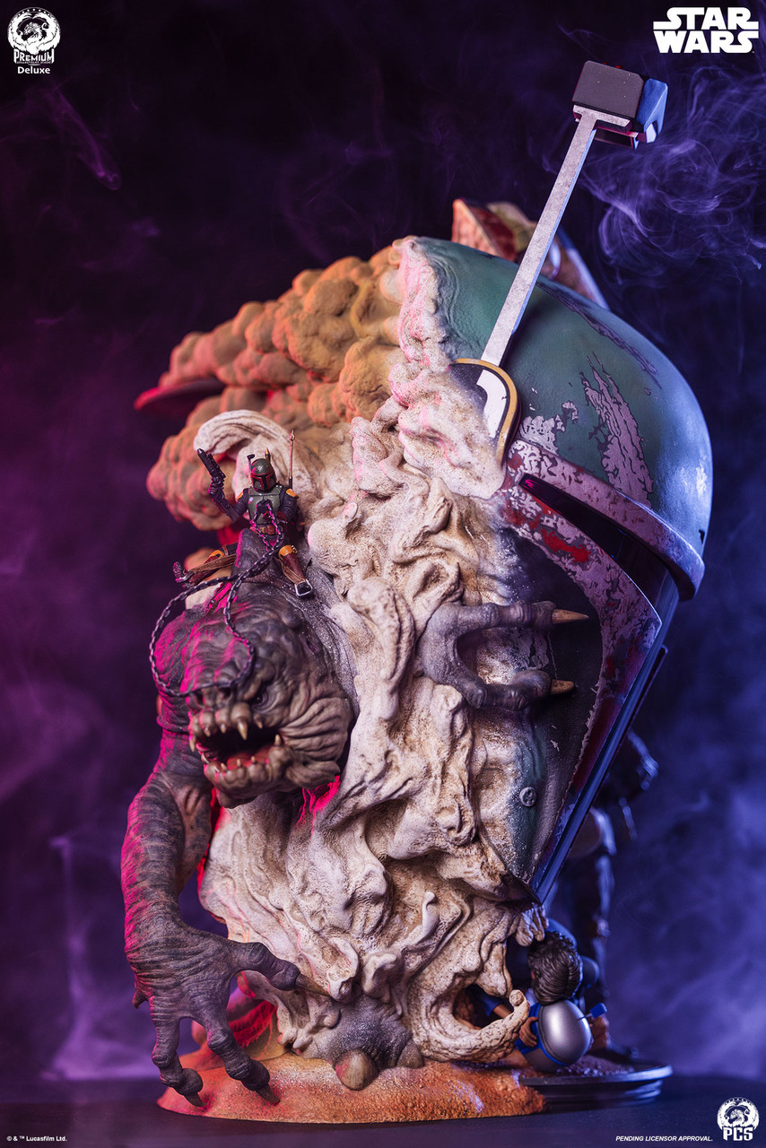 The Deluxe Edition also includes an optional addition, a swap-out sculpted element depicting an older Boba Fett riding atop the fearsome Rancor beast.