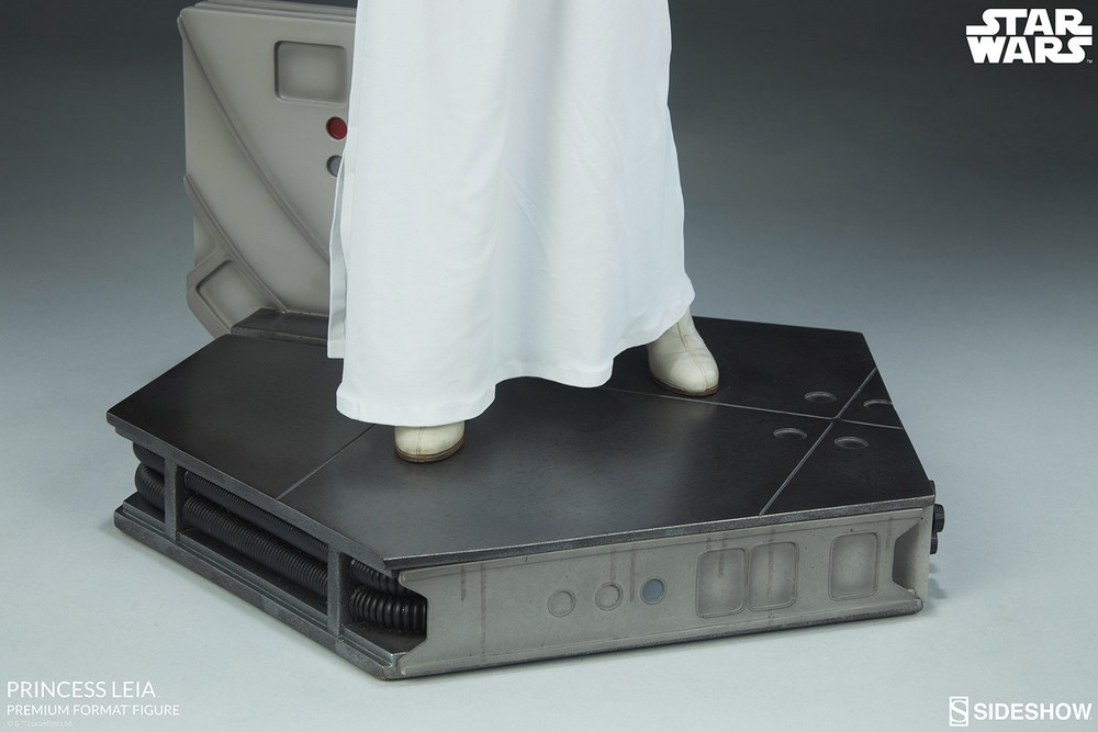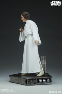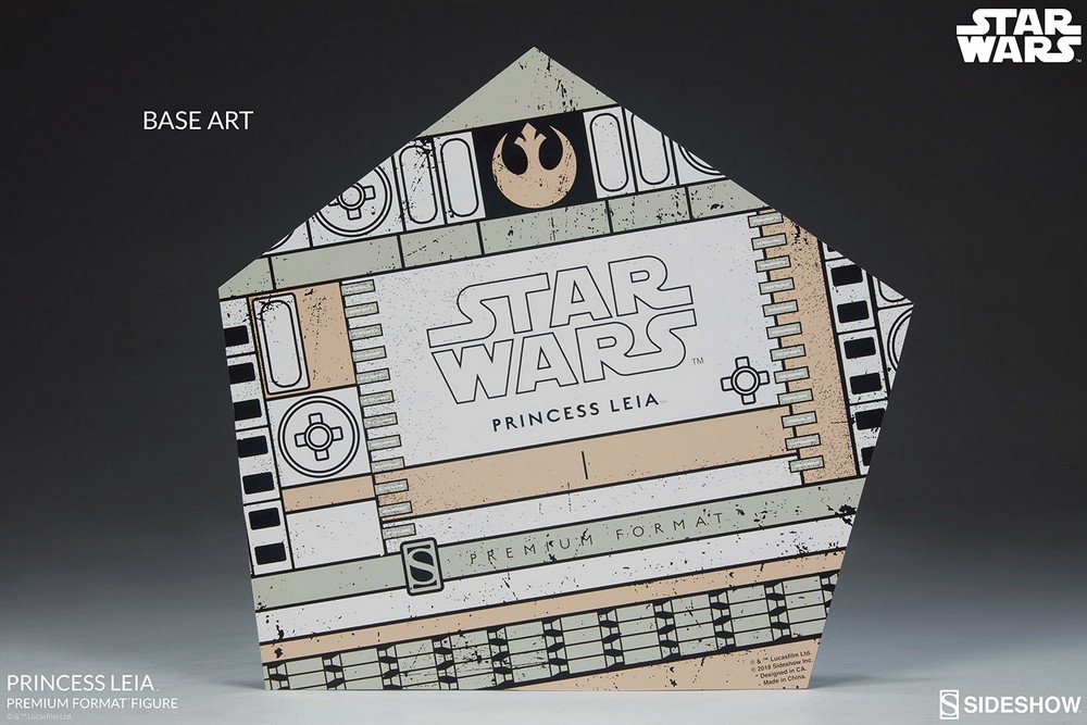 The Princess Leia Premium Format™ Figure measures 18” tall, standing on a base inspired by the events in Star Wars: A New Hope. Poised and ready with her blaster, Princess Leia embodies the strength, grace, and determination of everyone’s favorite royal rebel.