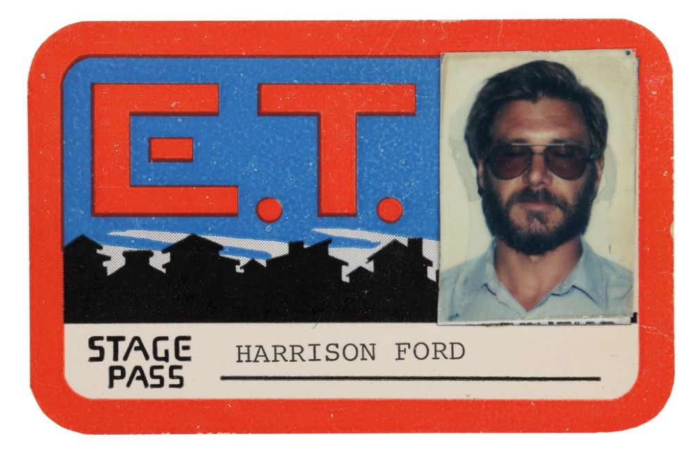 Harrison Ford’s stage pass from the production of Steven Spielberg’s sci-fi film E.T. the Extra-Terrestrial. Ford was cast as Elliott’s (Henry Thomas) school principal but, while his scene was filmed, it was ultimately cut. The scene is available to view online and Spielberg deliberately obscured Ford’s face for the scene. This lot was gifted to the consignor in the 1980s from a relative who worked on the film.