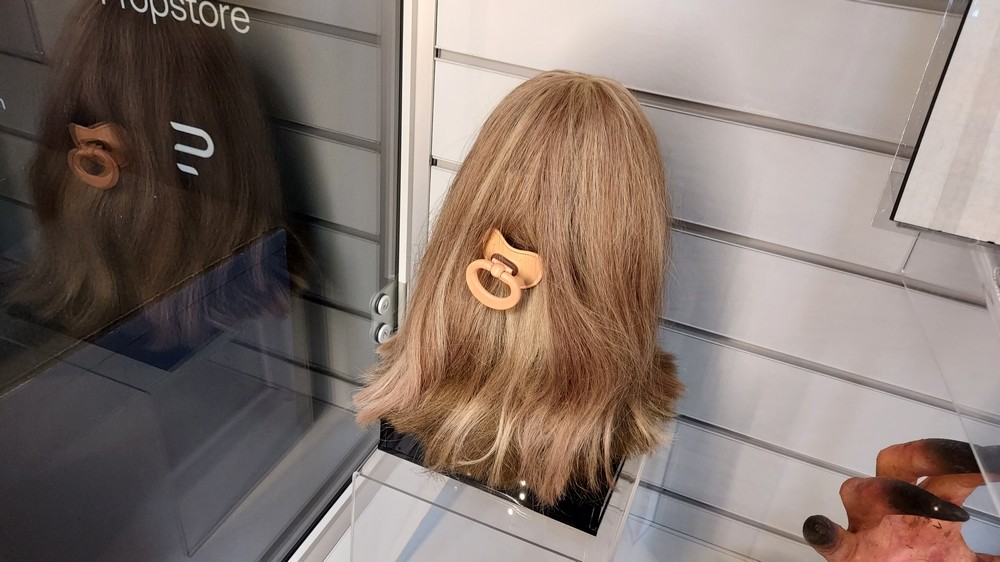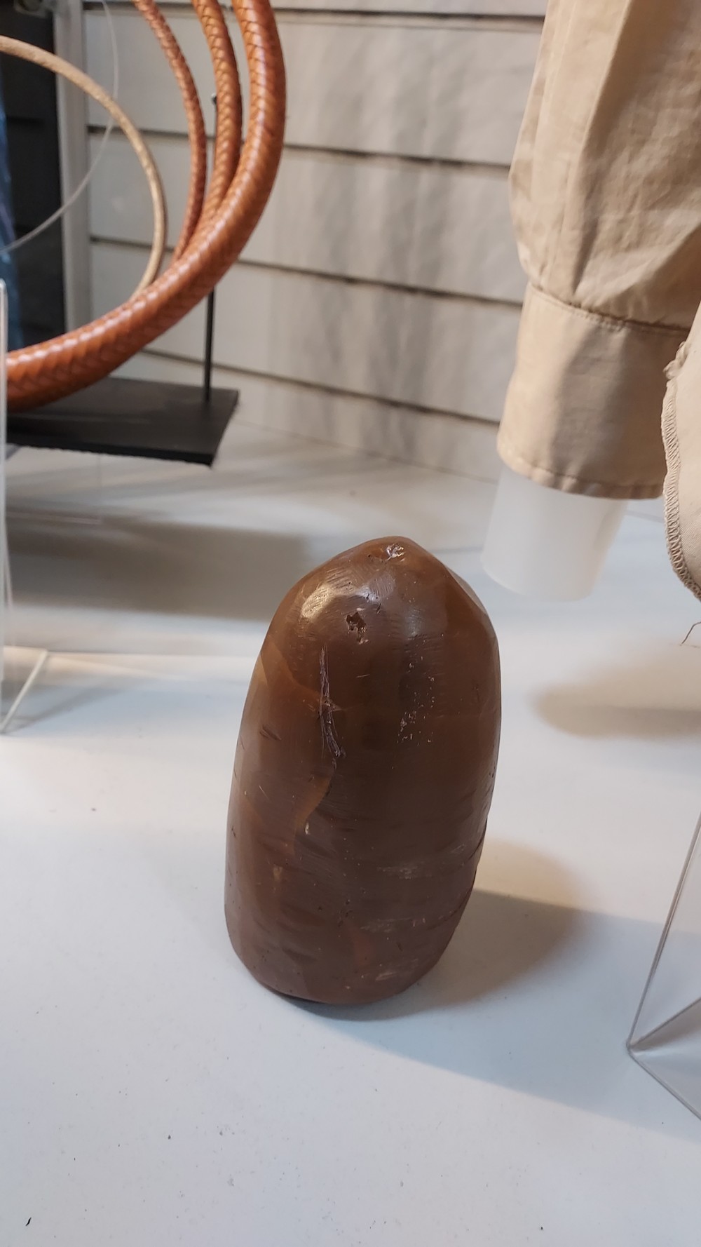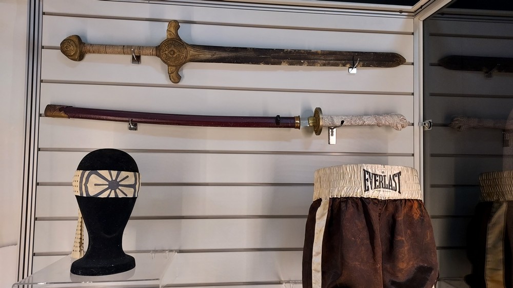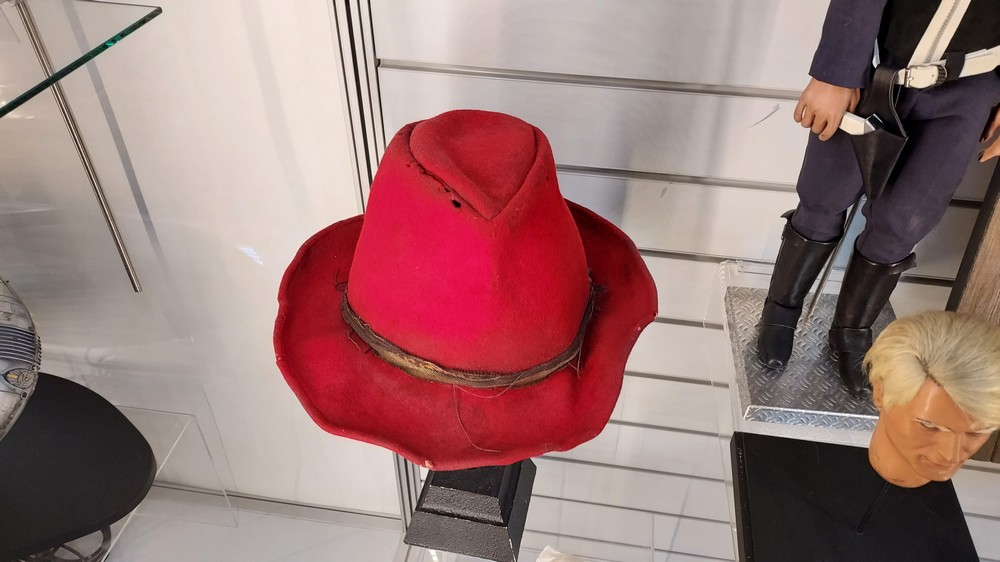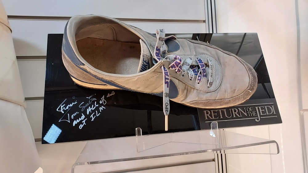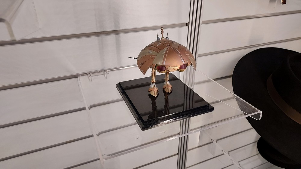 Sitting alongside the Anthony Daniels items were a trio of incredible props from the Indiana Jones films. First, the short worn by Harrison Ford in Raiders of the Lost Ark, which was sent to the production of Indiana Jones and the Dial of Destiny in order to as closely match as possible for the 1944 deaged scenes. Also, one of the legendary Sankara stones and Indy’s whip from Temple of Doom, with a letter of provenance signed by Ford himself.