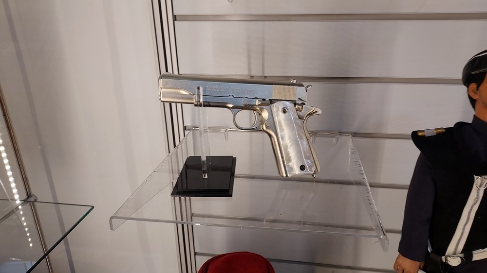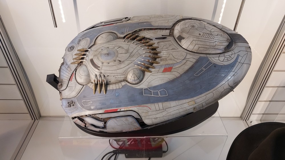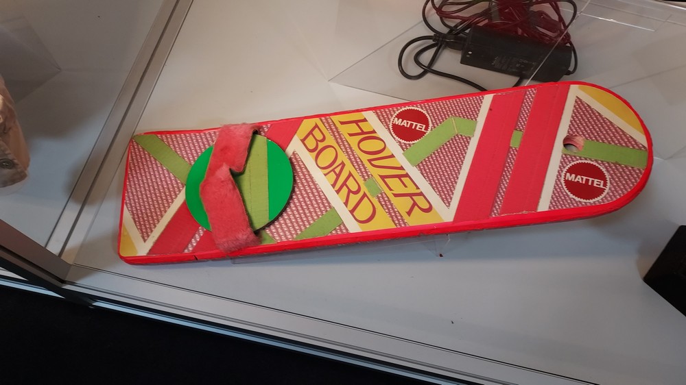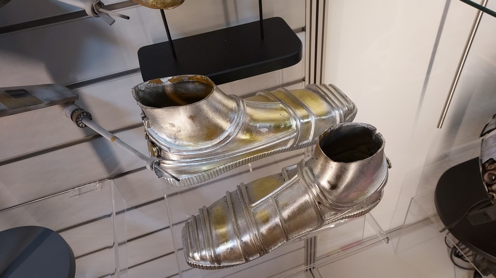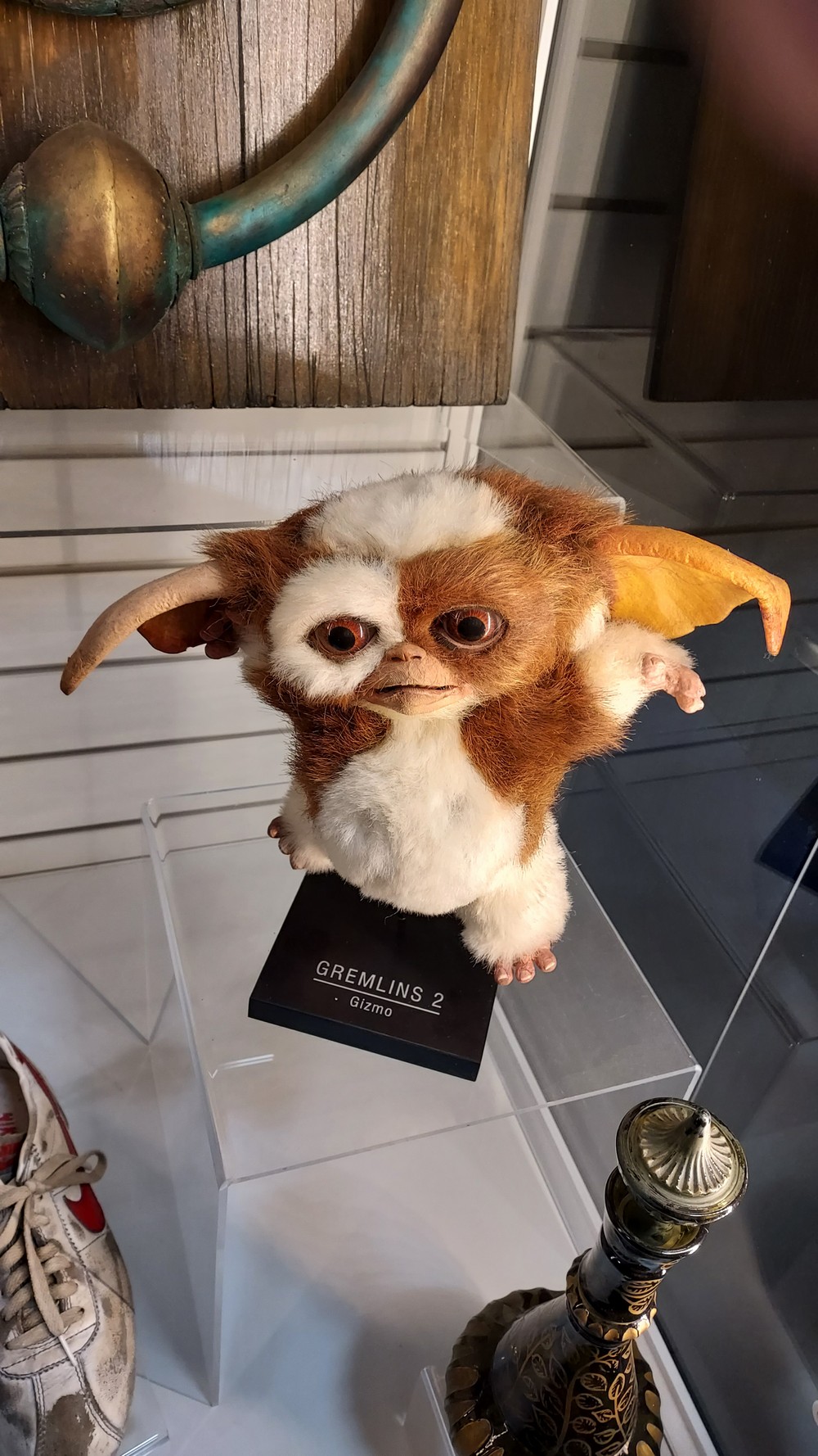 Where else wil you find props from Stargate next to a promotional R2-D2 placed in front of costumes from Gladiator, Pirates of the Carribean and The Big Lebowski. Not only that but Forest Gumps running shoes, a hat and sandwich from Paddington, Gizmo from Gremlins, a door knocker from Labyrinth, Captain Scarlet marrionettes, the hoverboard from Back to the Future 2 and even the sword from Highlander. Throw in a headband from Karate Kid 2 and 3 and Robert DeNiro’s shorts from Raging Bull and you have an incredible display of movie history.