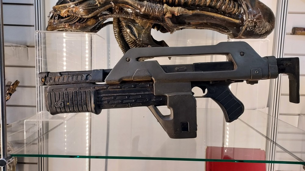 The aftermath of Star Wars saw a slew of similar projects get off the ground, including Alien and later Aliens. Here we have an Alien head, a pulse rifle, the APC, Hicks’ knife and an onset script.