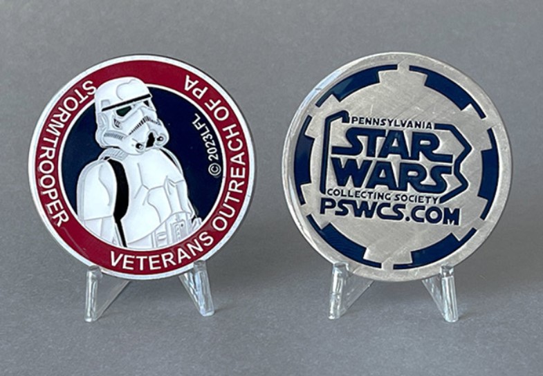 The limited-edition medallion is fully approved by Lucasfilm and has an edition size of 1000 pieces. Each medallion features the likeness of a Stormtrooper on the front, along with the date and the name of the charity, Veterans Outreach of PA. The red, white, and blue color scheme chosen by VOPA represents all of those who have served. The back features the PSWCS logo.