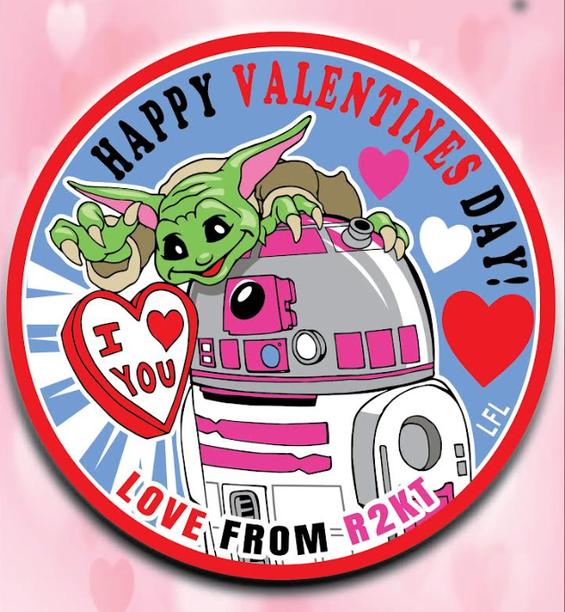 Valentine’s Day is just weeks away and R2-KT is feeling the LOVE. Bobby Henley, artist extraordinaire, has unveiled a beautiful Valentine for fans featuring KT that is just amazing and we think you’ll love it. Baby Grogu embraces the Pink side of the Force with the iconic candy heart valentine and our pink droid is caught by surprise!