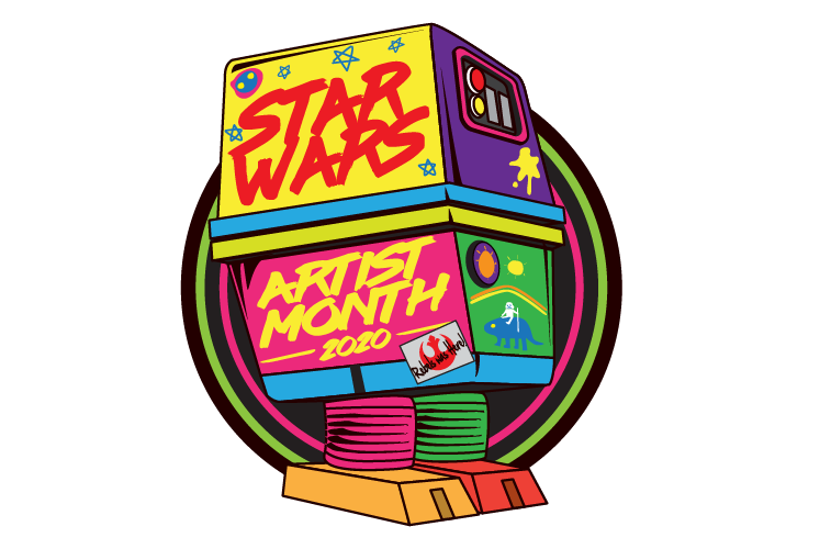 We’ve had a great time so far hosting the first ever Star Wars Artist Month. We are on day 20 of featuring artists both professional and part-time, all of them with a passion for showing us new views on that galaxy far, far away. Hosting it on the r2kt.com website means we’ve had the privilege of spreading awareness and appreciation for our artist community. So we feel quite honored and we plan for this to grow and become an anticipated yearly event!To thank our artists for participating we are doing a run of patches for the mascot of the event: Graffiti Gonk! Designed by Dave Liew, this little droid embodies all the quirky creative fun of the cause. So we’ll do a small run and most will be sent as gifts to the artists. But anyone who wants one or more can say they have the first one in the series.