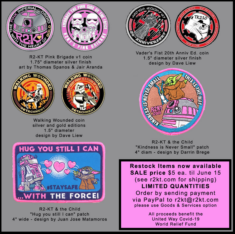 While we cover the R2-KT Star Wars Artists Month we need to remember that their patch and coin sales continues and our pal Albin Johnson brings us the latest news regarding that and a super forthcoming patch.