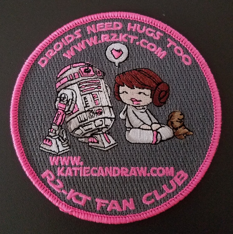 Multiple people wrote to us asking if we would offer the second-ever KT Fan Club patch again, featuring Katie Cook’s adorable drawing of Leia enjoying the company of R2-KT. Originally released ten years ago, it is still a fan favorite. So we are re-issuing this 3.5″ embroidered patch in a tiny run AND we’re doing vinyl stickers! Please feel free to order or reserve yours today.