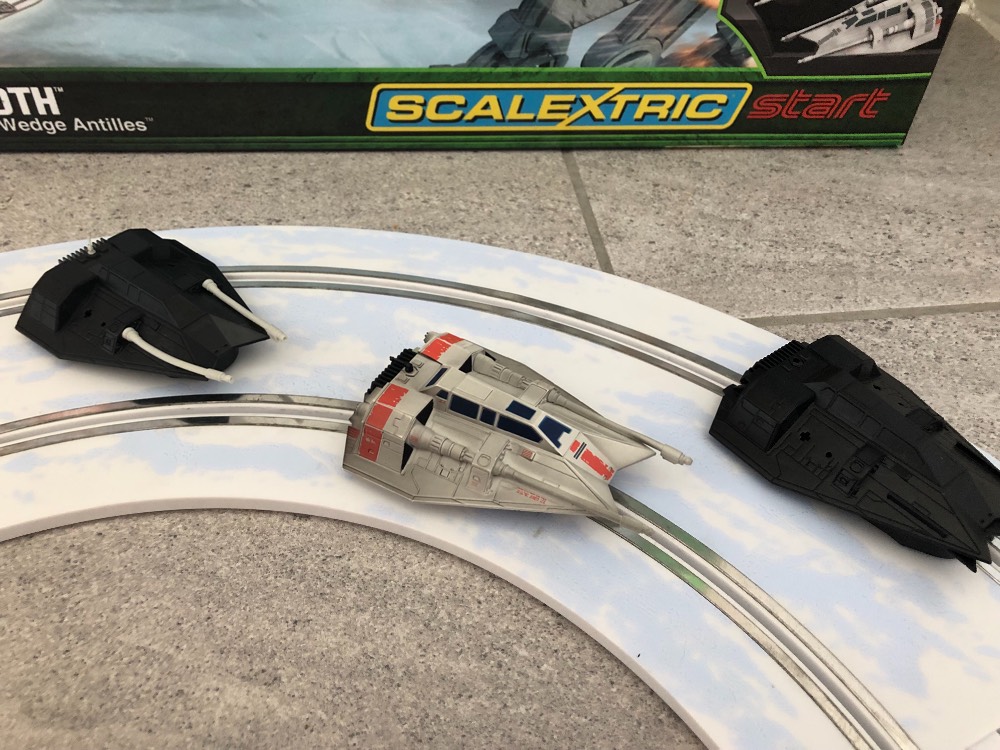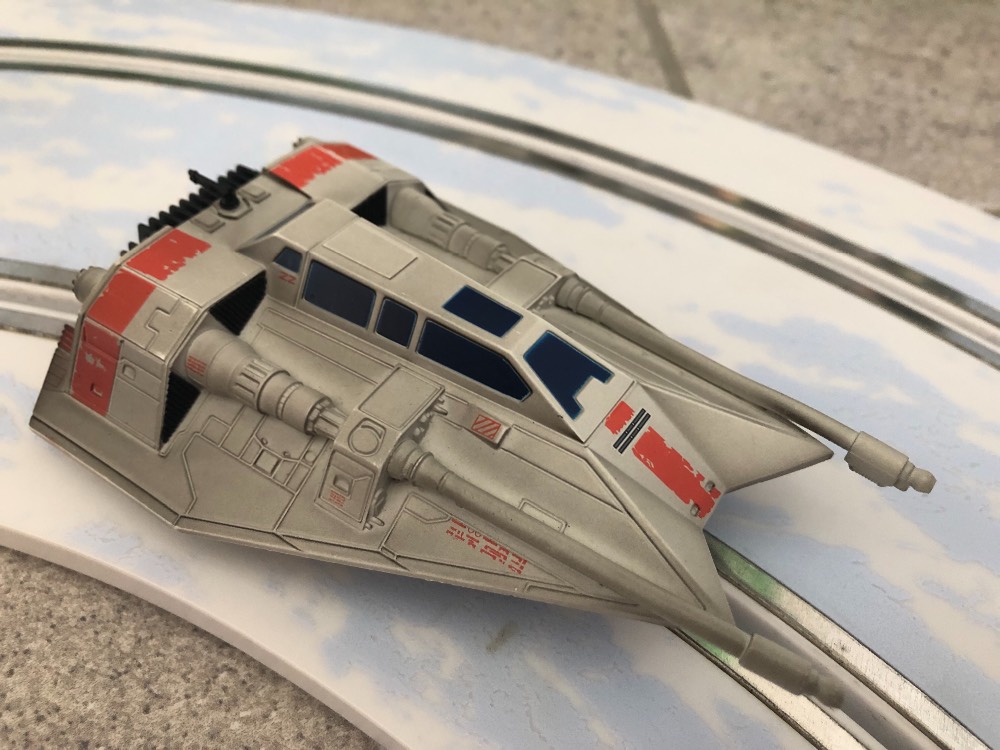 Star Wars and Scalextric have not had a happy partnership with poorer than hoped for sales in the early 2010s with sets such as Battle for Endor and Death Star Attack. This would have led to the cancellation of this awesome set “Battle of Hoth” last seen at Toy Fairs in 2013. A fellow Star Wars fan and Scalextric collector is offering this prototype for sale for £1500.