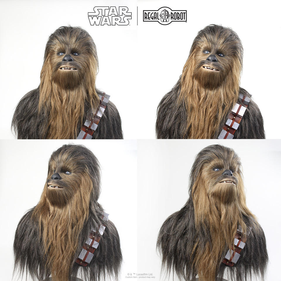 Regal Robot™ is proud to present our new CUSTOM EDITION life-sized Chewbacca bust from our Custom Character Studio. An authentically crafted 1:1 recreation of everyone’s favorite Wookiee™, this new bust stands a giant 36″ tall and includes head and shoulders as well as a portion of hand-made and distressed leather and metal bandolier section. This item is also eligible for 3 easy payments via Partial.ly.