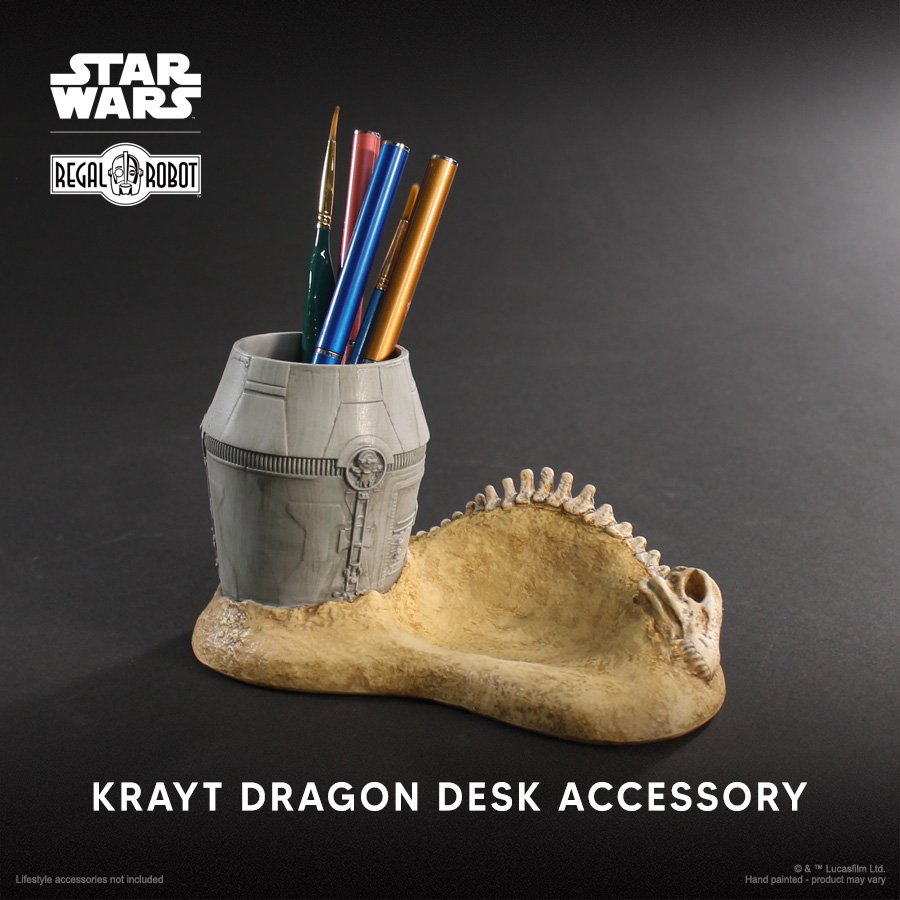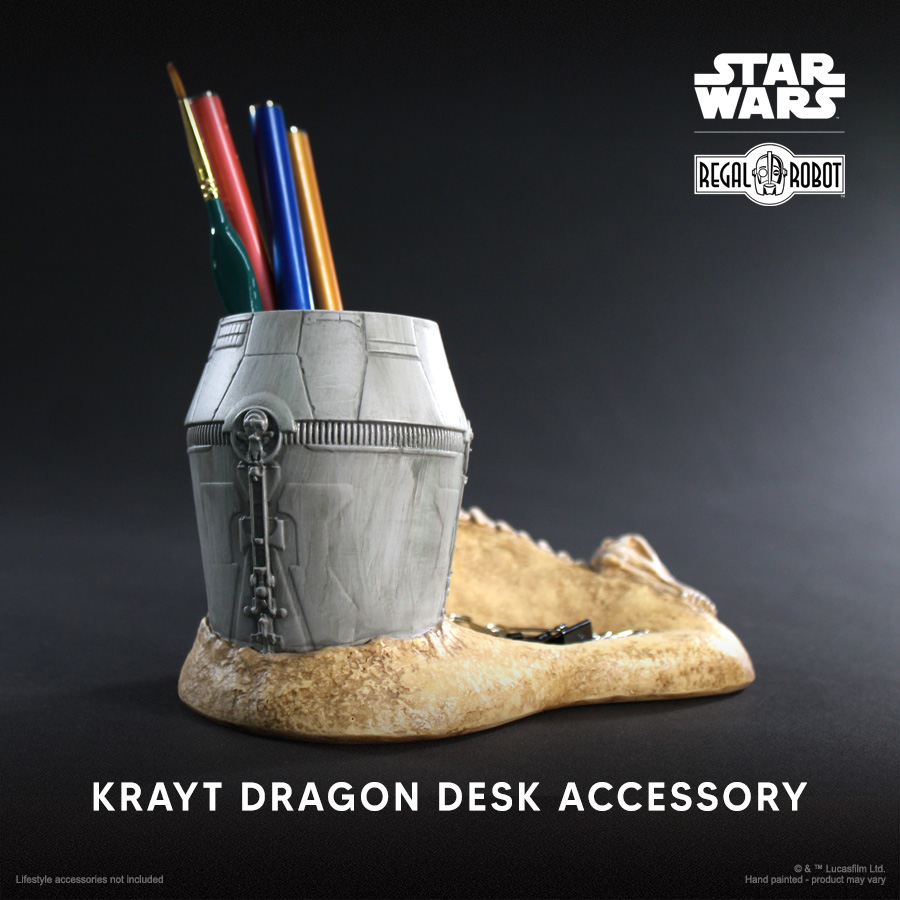 Our new Krayt Dragon Desk Organizer brings classic Star Wars™ style into your office or home with our uniquely inspired designs. Relive an iconic moment from Star Wars: A New Hope at your desk, in your cubicle or wherever you need to store pencils, pens, paint brushes, paperclips and more!