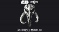 The realistic skull is inspired by the mysterious marking seen on the armor of iconic bounty hunter, Boba Fett. At approximately 4.5 inches long and weighing over 1 pound, this unique artwork is sure to bring a bit of the Star Wars™ universe to any home, fan cave, office, desk or shelf. Each skull comes ready to display in a beautiful black box. An acrylic display stand is available as an optional accessory and the stand ships free when paired with a skull at the time of purchase.