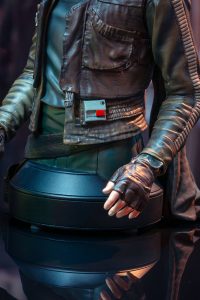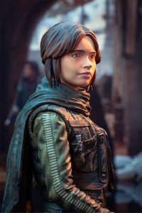 From Lucasfilm comes the first of the Star Wars story films, “Rogue One: A Star Wars Story,” an all-new epic adventure. In a time of conflict, a group of unlikely heroes band together on a mission to steal the plans to the Death Star, the Empire’s ultimate weapon of destruction. Putting behind a checkered past by lending her skills to a greater cause, Jyn Erso is impetuous, defiant, and eager to bring the battle to the Empire. Used to operating alone, she finds higher purpose by taking on a desperate mission for the Rebel Alliance. Sculpted from “on set” reference and Lucasfilm archive materials, color matched using fabric swatches and then hand painted to pick up every bit of weathering on her fatigues. Each stripe and every snap are finely detailed, including her holster and unique blaster. Jyn Erso was digitally sculpted to ensure precision and character correct execution. This Rogue One limited edition 1:6 scale collectible is hand numbered and comes packed with a matching Gentle Giant certificate of authenticity.