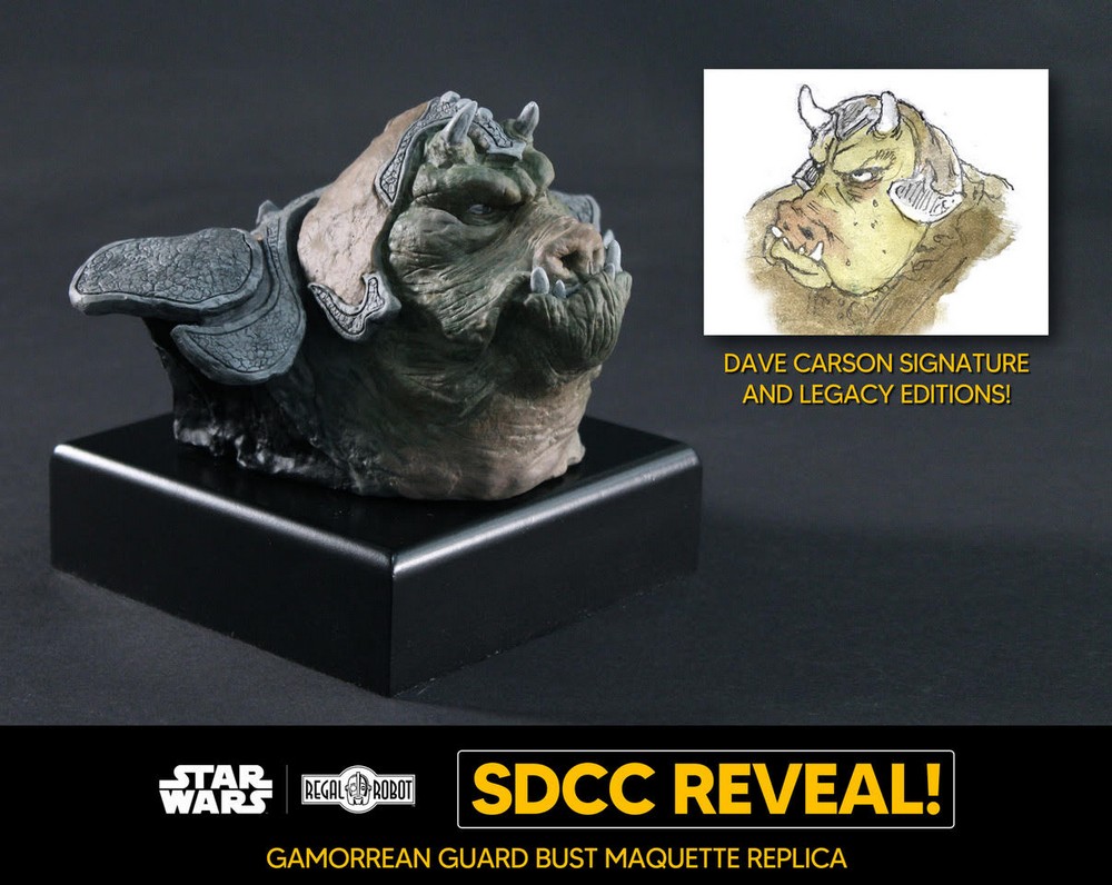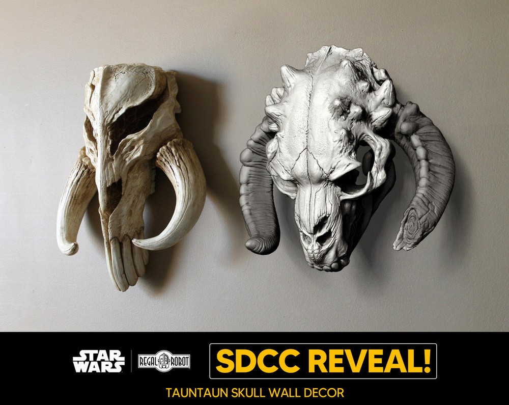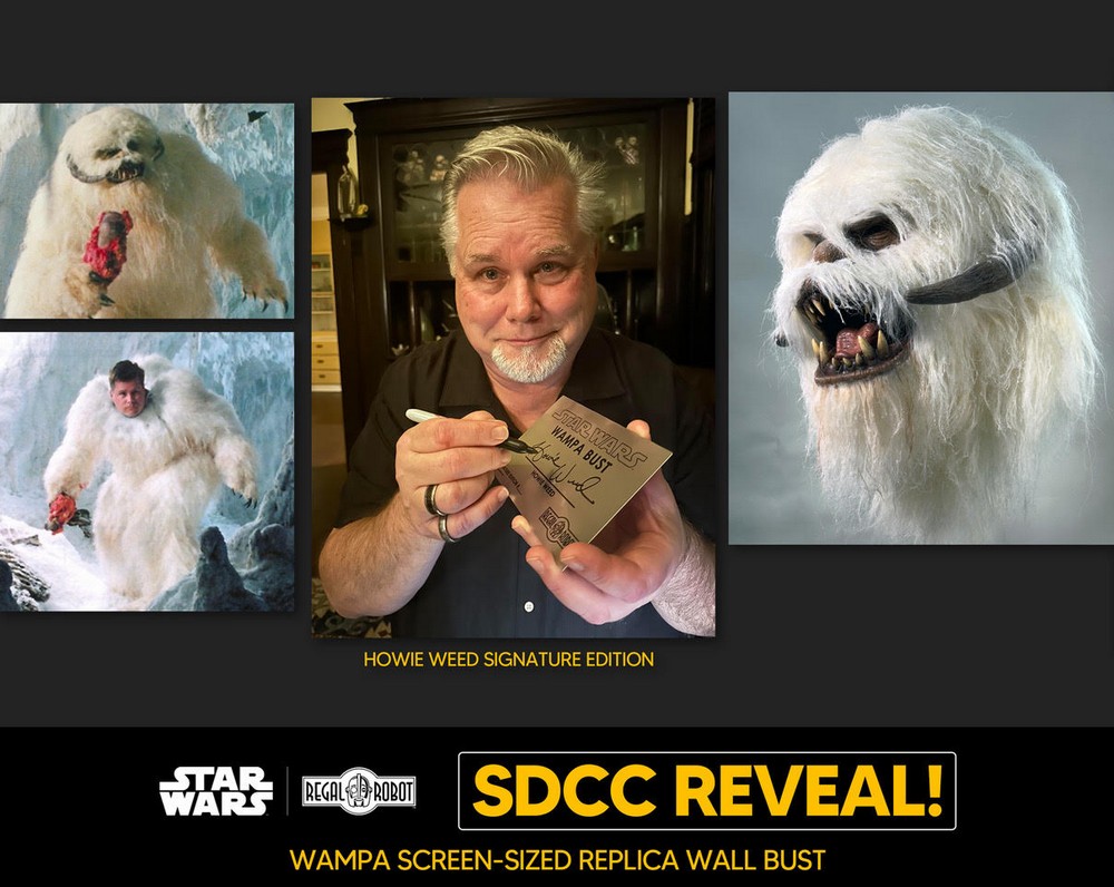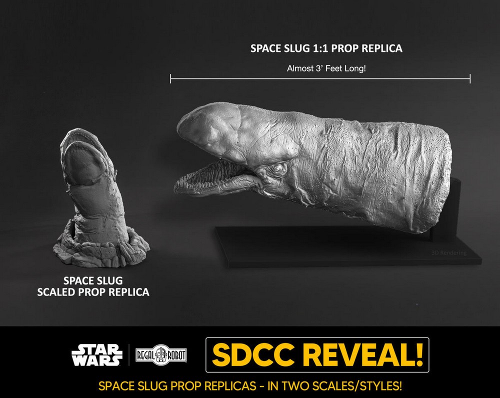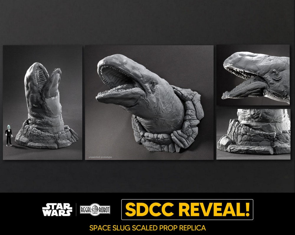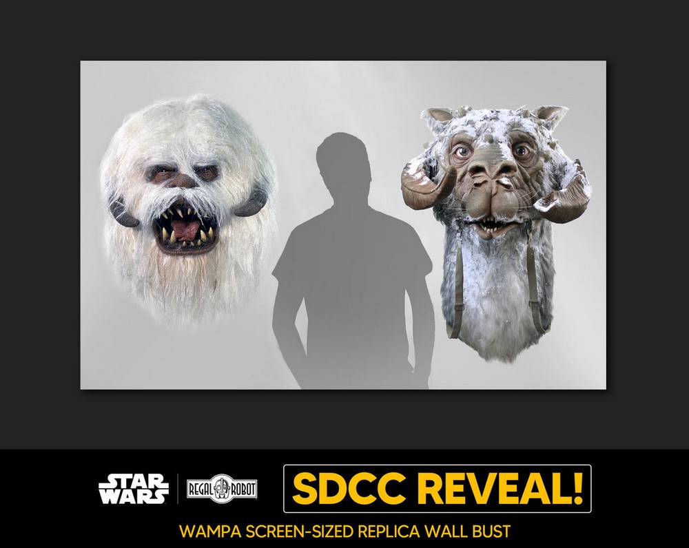 Today at San Diego Comic Con, Regal Robot announced a number of new Star Wars and Indiana Jones replicas. Among the extremely unique new creations are expansions of the company’s Archive Collection line like Belloq’s Ceremonial Staff from Raiders, Gamorrean Guard and Ephant Mon Maquette Replicas, prop replicas of the Gamorrean Axe and Space Slug, and even a giant “Screen-size” Wampa bust!