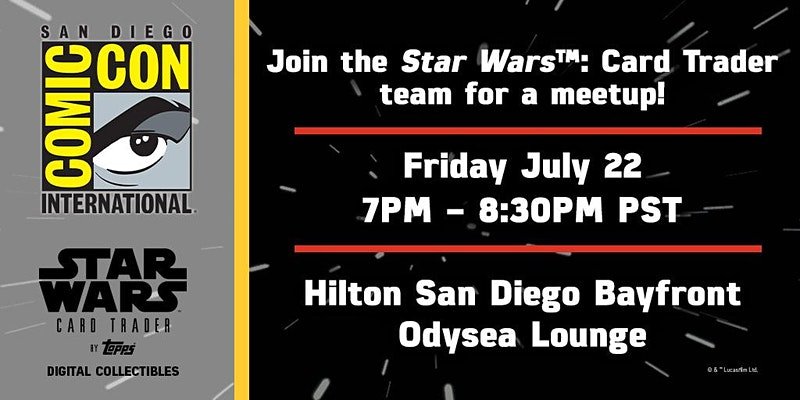 Once again Topps have a presence at San Diego Comic Con with a fan meetup on Friday 22nd July, so be sure to download the app before visiting the booth. Give your fan name to one of the booth staff and you’ll be gifted an exclusive pack of cards.