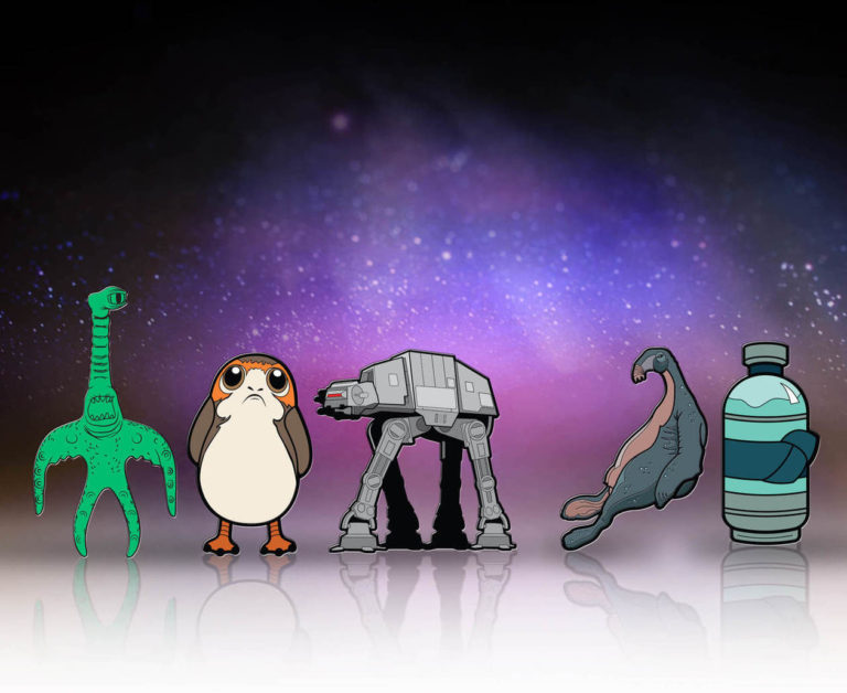The enamel pin craze has swept the planet and once again pop culture fandom is on the forefront of that trend. Gentle Giant Toys is beyond excited to step into this arena with the biggest juggernaut license in the galaxy – Star Wars! Our first release of our officially licensed, cloisonné hard enamel Star Wars pins will be available exclusively at SDCC 2018! These 1.75” Comic Con exclusive pins will each be sold separately and include some whimsical creatures and an iconic vehicle! Collect them all! Choose from: