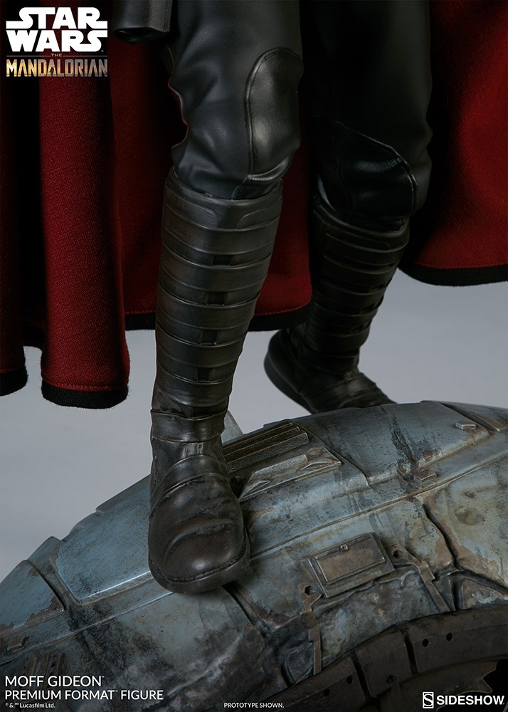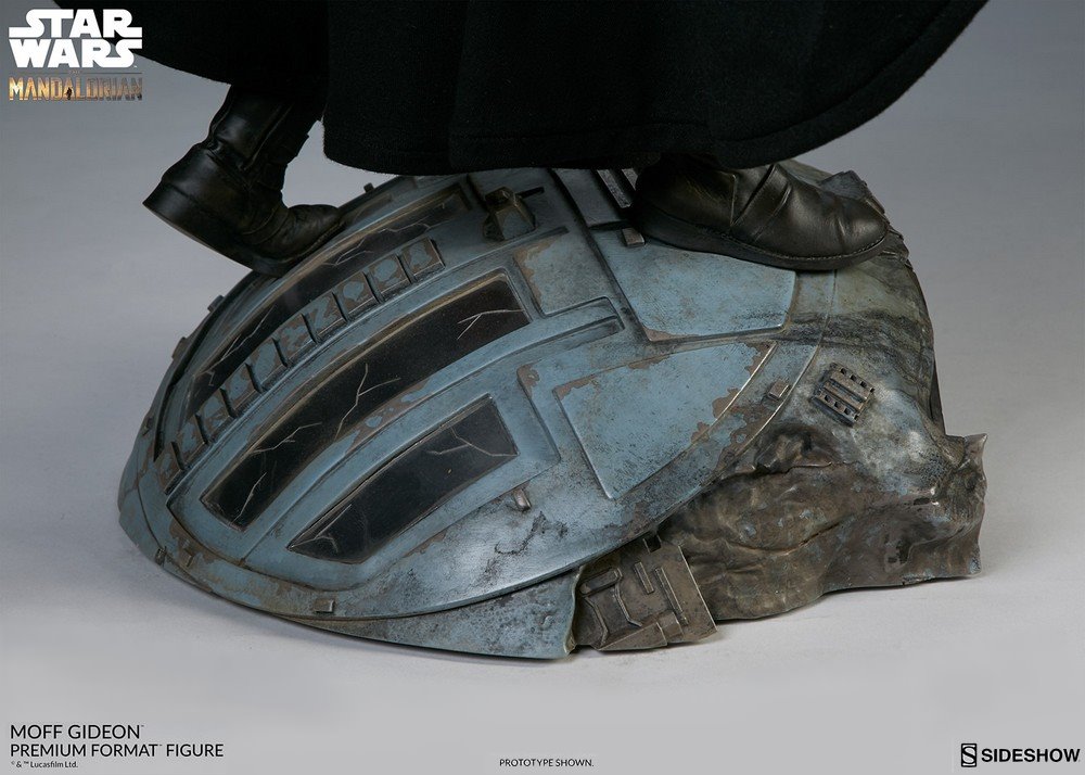 The polystone Moff Gideon Premium Format Figure measures 19.75” tall, standing atop the wreckage of his crashed TIE fighter inspired by the action-packed finale of the first season. In a shocking moment, Gideon reveals that he is the current wielder of the darksaber – an ancient lightsaber that serves as a powerful symbol of leadership to the Mandalorians.