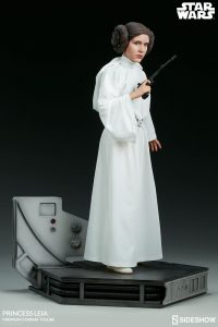 The Princess Leia Premium Format™ Figure measures 18” tall, standing on a base inspired by the events in Star Wars: A New Hope. Poised and ready with her blaster, Princess Leia embodies the strength, grace, and determination of everyone’s favorite royal rebel.