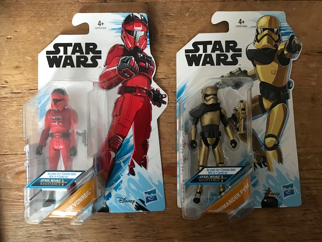 Both the single and twin packs of the Star Wars Resistance 3 3/4 figures have started to arrive at retail in the UK. The complete wave was found at Fenwicks department store in Bracknell.