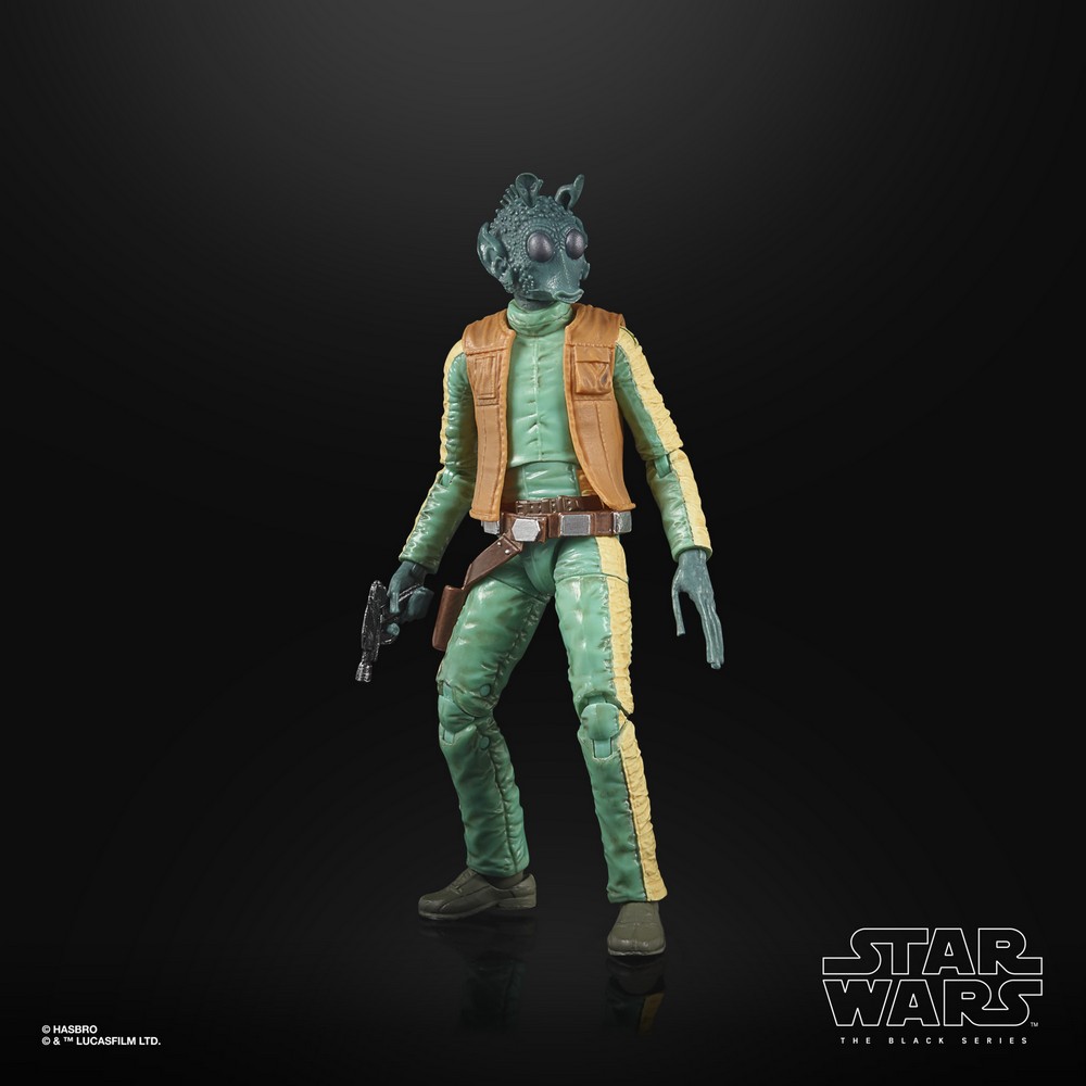 Commemorate the first 50 years of LUCASFILM with figures inspired by the original STAR WARS trilogy featuring STAR WARS The Power of the Force-themed packaging. Recall intense moments from the STAR WARS Galaxy with this STAR WARS: THE BLACK SERIES LUCASFILM 50TH ANNIVERSARY 6-INCH GREEDO Figure with detachable blaster accessory. STAR WARS fans can display this fully articulated figure featuring poseable head, arms, and legs, as well as premium deco, in their action figure and vehicle collection. Includes figure and accessory. Available for pre-order at Hasbro Pulse and shopDisney.