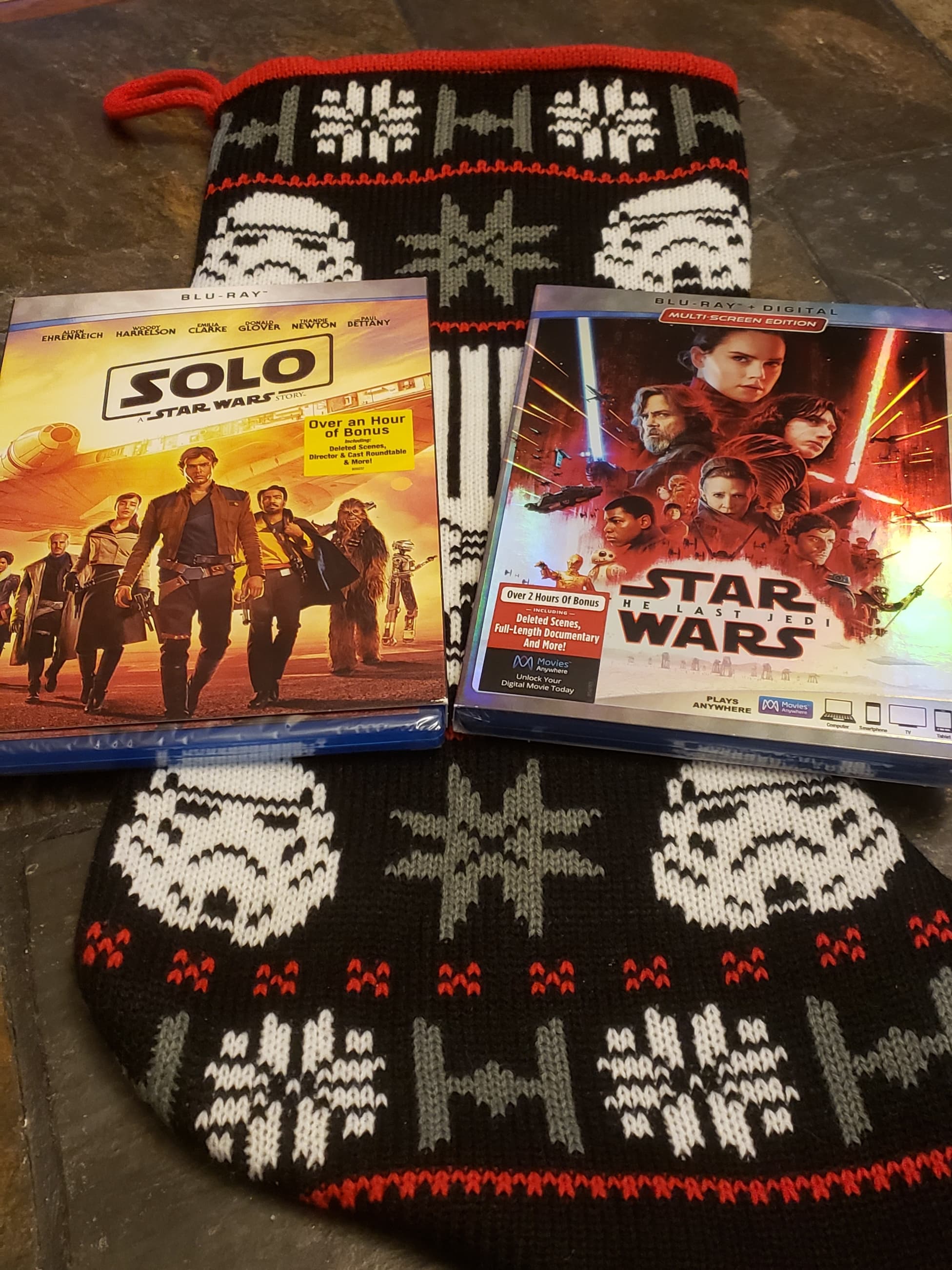 I only put two Star Wars items on my Christmas list this year: The Blu-Ray versions of The Last Jedi and Solo. And, lo and behold, I received them both! I know you’re thinking, “She didn’t already have them? Has she been living under a bantha?” But, isn’t it more fun being patient and waiting until someone else buys them for you? I certainly think so!