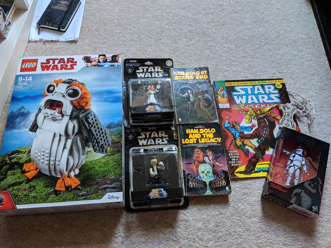 My wife bought me the awesome Lego Porg, classic Han Solo books and the last two Disney Star Tours figures I needed to complete Series 1. The end is now in sight.