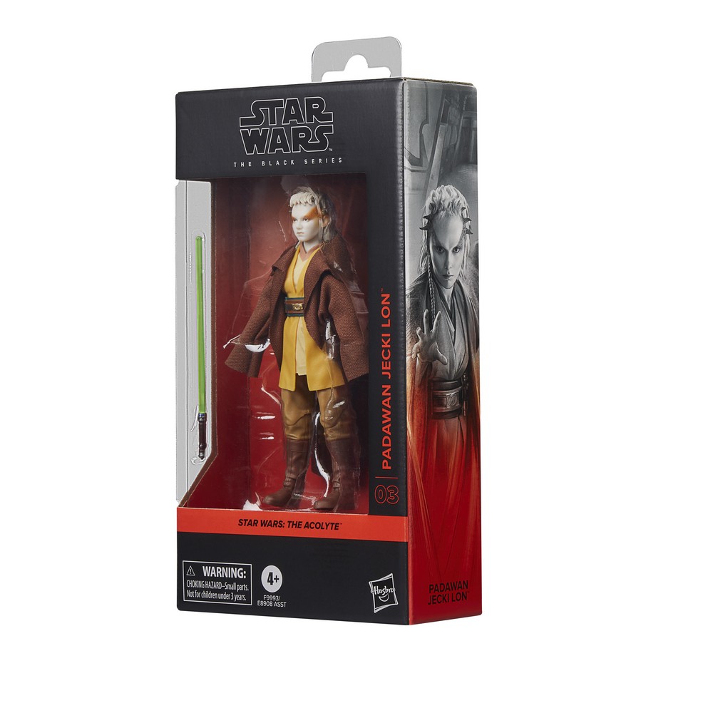 STAR WARS fans and collectors can imagine scenes from the STAR WARS galaxy with this premium 6-inch STAR WARS: THE BLACK SERIES PADAWAN JECKI LON figure, inspired by the character’s appearance in STAR WARS: THE ACOLYTE. At the end of the High Republic era, a former Padawan reunites with her Jedi Master to investigate a series of crimes – but the forces they confront turn out to be far more sinister and personal than anticipated. Fans and collectors can display this fully articulated figure featuring premium detail and multiple points of articulation in their collection. Includes figure and Lightsaber accessory with a removable blade.