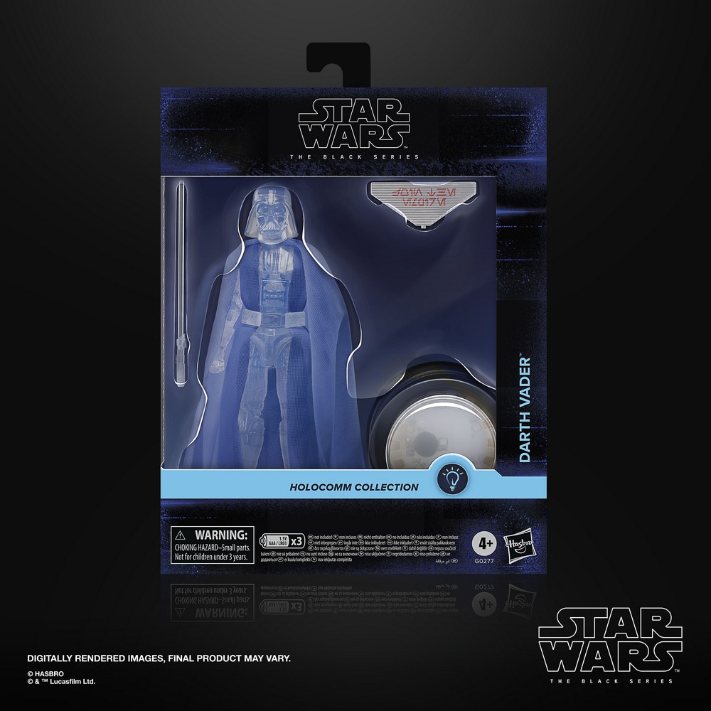 The Black Series: Darth Vader with Holocomm Figure is announced, part of Imperial March and bringing the dark lord of the sith to collections everywhere in hologram form as seen in The Empire Strikes Back. Vader features hologram-style deco, a 30-minute light display, a puck and you can order the figure today exclusively at Amazon.
