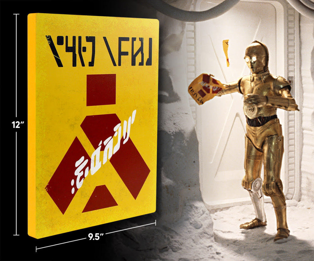 Regal Robot™ is excited to debut our wood art plaques with this 12″ tall, 3/4″ thick Wampa Warning Sign Plaque. Bordering on stealth geek, it draws inspiration from a cut sequence from Star Wars: The Empire Strikes Back™ in which C-3PO tears down a warning sign in Echo Base, leading some unfortunate snow troopers to a brief, but unpleasant, encounter with a wampa!