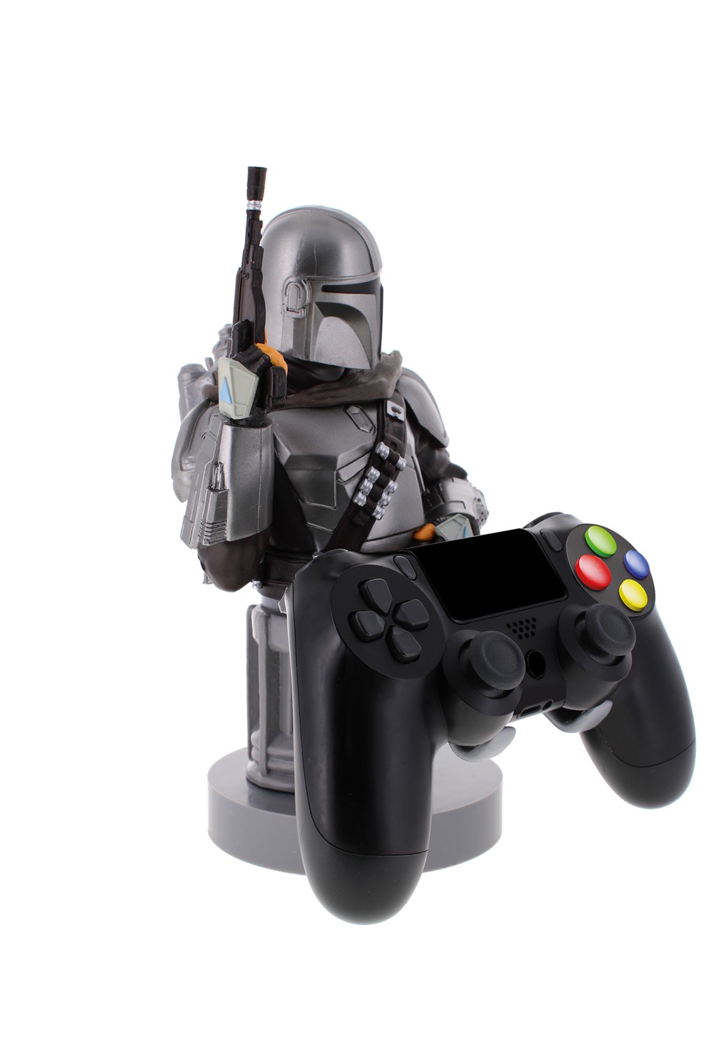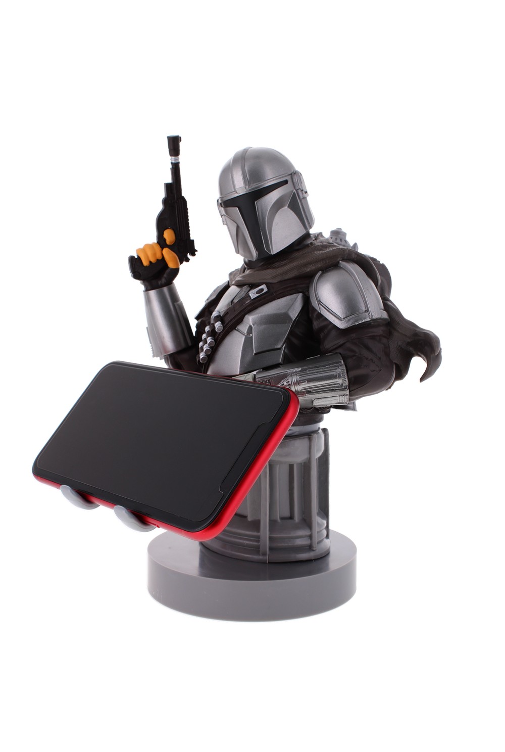 As part of the immensely popular Cable Guy Range of collectable characters, from the world of gaming and entertainment, The Mandalorian is able to hold most types of gaming controllers and smartphones, supported on the patented shelf system. The Rotating Entertainment Support Tray, or R.E.S.T, can spin all the way around the podium base, allowing fans to have the choice of which angle to display their favourite character from, or simply fold it up and out the way at the back, for an unobstructed view of this deadly Bounty Hunter. He is now in your care. That is the way.