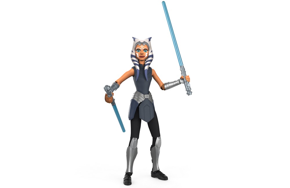 Imagine AHSOKA TANO wielding her two blue Lightsabers with Double Lightsaber Swipe action! Boys and girls can activate the STAR WARS GALAXY OF ADVENTURES 5-INCH AHSOKA TANO figure’s Double Lightsaber Swipe feature by twisting the action figure’s torso and releasing it. This 5-inch-scale action figure features multiple points of articulation, with design and detail inspired by STAR WARS movies and entertainment. Includes figure and 2 accessories. Available at most major retailers.