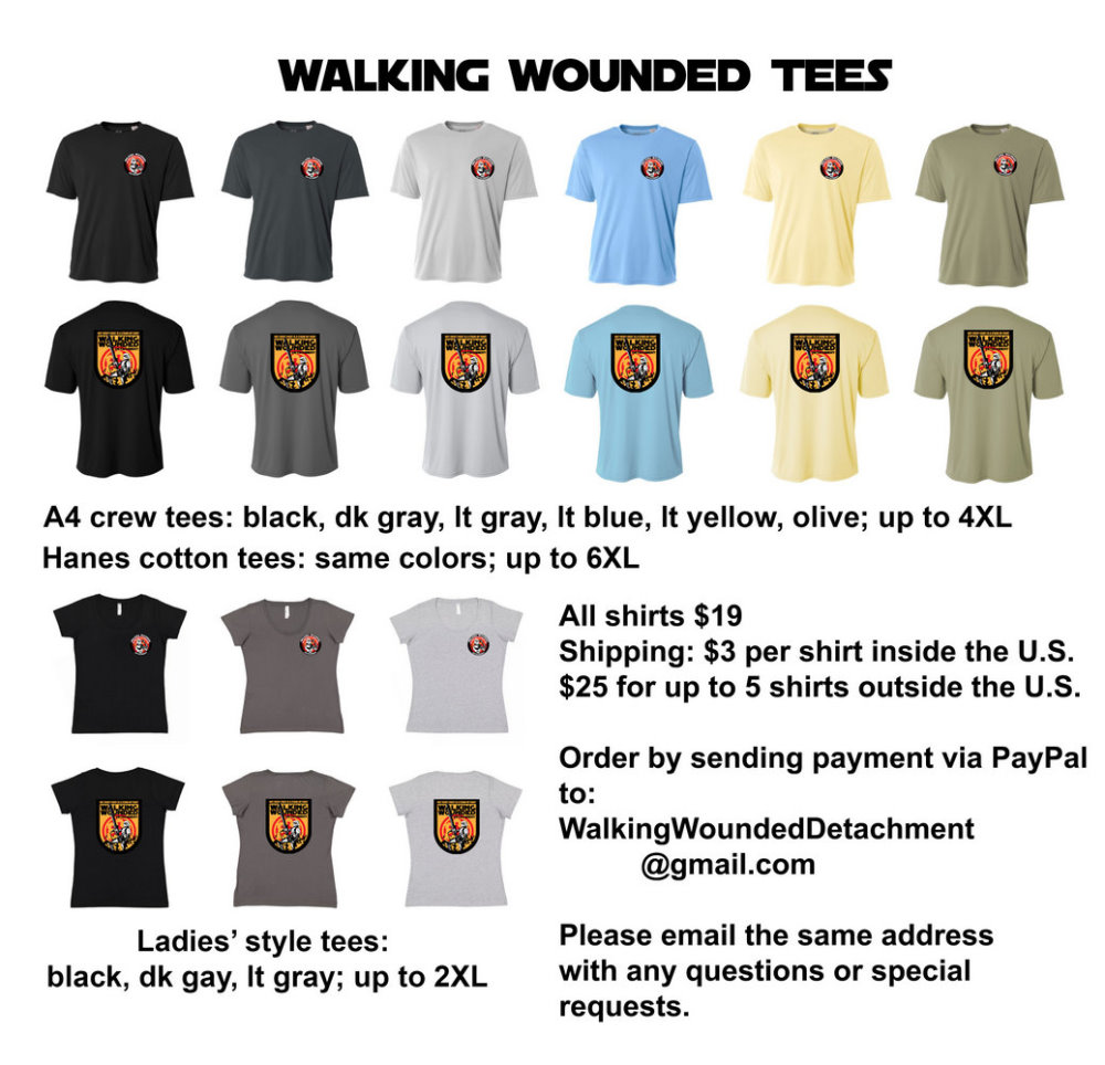 Note: We are honored to accept any and all costumers who wish to join us. Just send me an email to WalkingWoundedDetachment@gmail.com and we’ll be happy to support you in our fellowship. 🙂