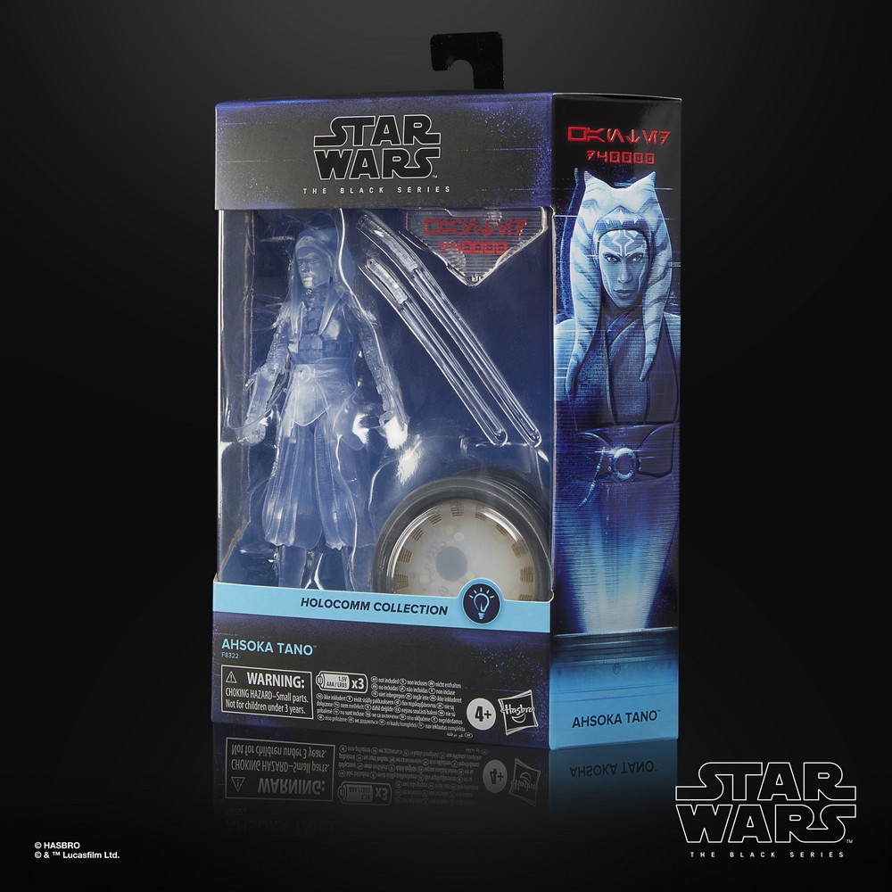 Receive transmissions from across the galaxy with THE BLACK SERIES Holocomm collection, featuring light-up holopucks. STAR WARS fans and collectors can display this premium 6-inch STAR WARS: THE BLACK SERIES AHSOKA TANO figure, featuring premium detail, multiple points of articulation and hologram-style deco in their collections. Press the button on the puck to light up the bottom and illuminate the figure. Press and hold the button to activate a 30-minute light display! This collectible figure includes a bounty chip with an Aurebesh inscription, a holopuck and her 2 signature Lightsaber accessories! Look for more Holocomm Collection figures to build a galactic communication hub on your shelf! (Each sold separately. Subject to availability) Requires 3 AAA batteries, not included.