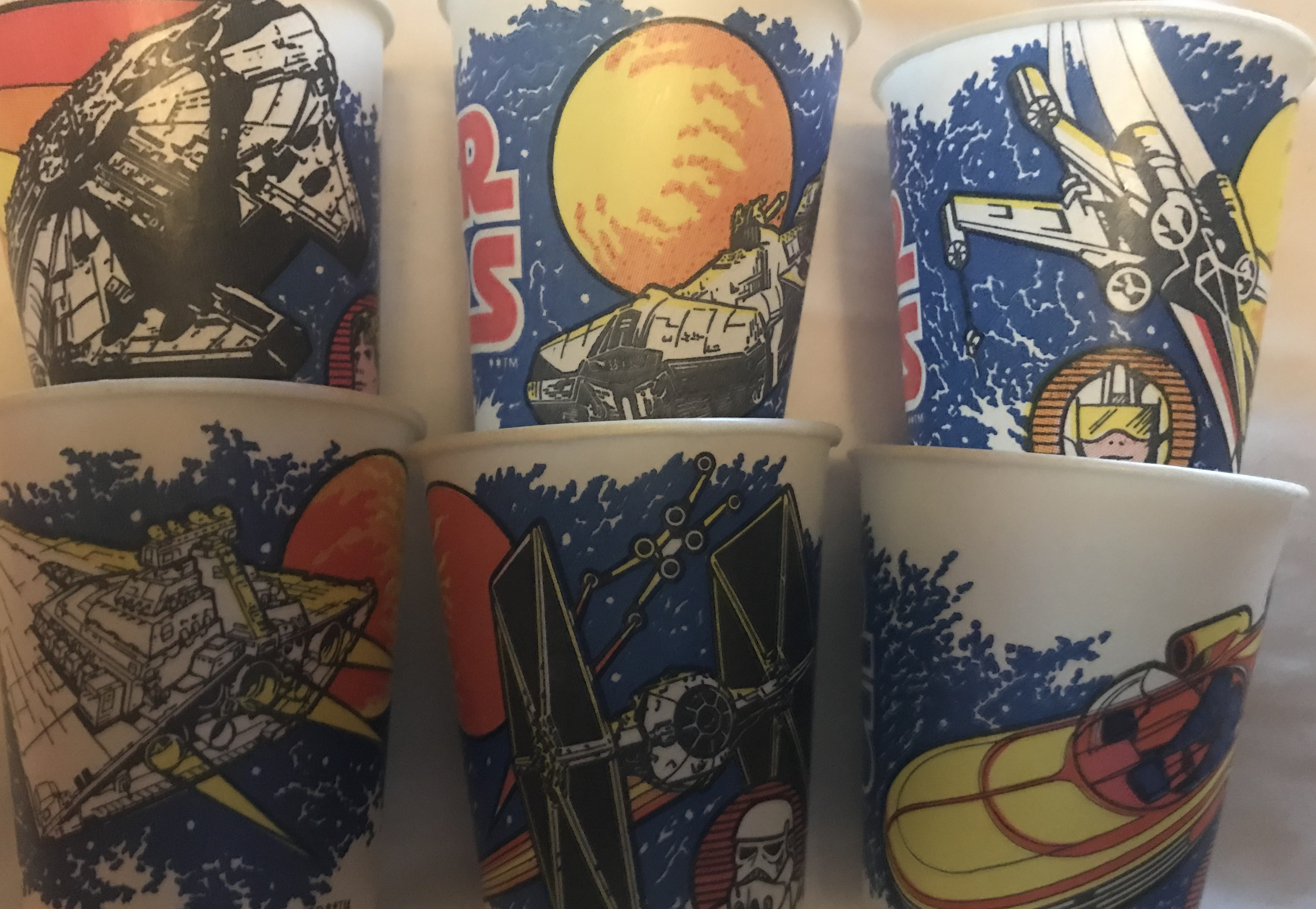 Dixie Cups are one of the most exciting, imaginative and rewarding products to track down with a total of 146 5oz cups depicting key characters and scenes from across all 3 movies of the original trilogy. The Dixie Cup brand was purchased by the American Can Company in 1957 who then produced the cups in 1980. Most of the cups can be purchased for as little as 50p and purchasing in bulk lots is commonplace and can be beneficial.