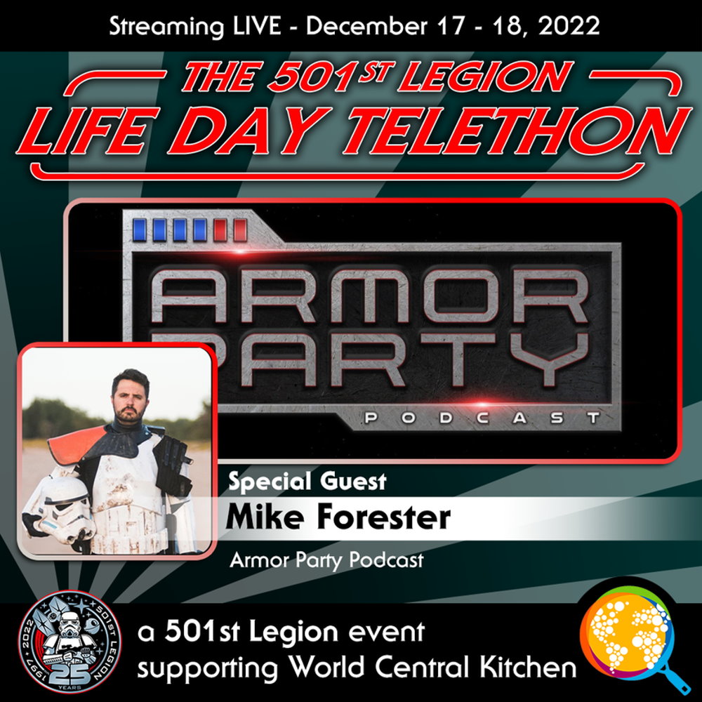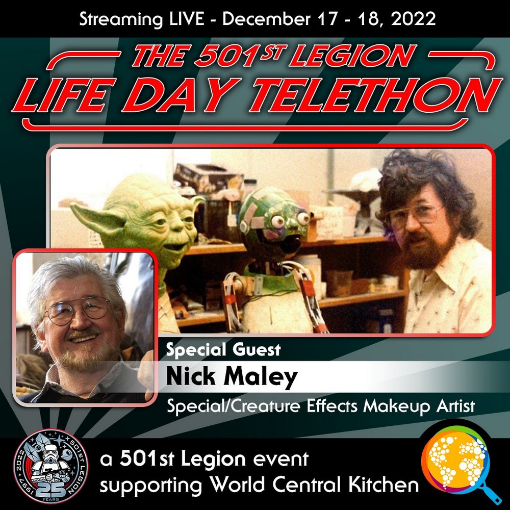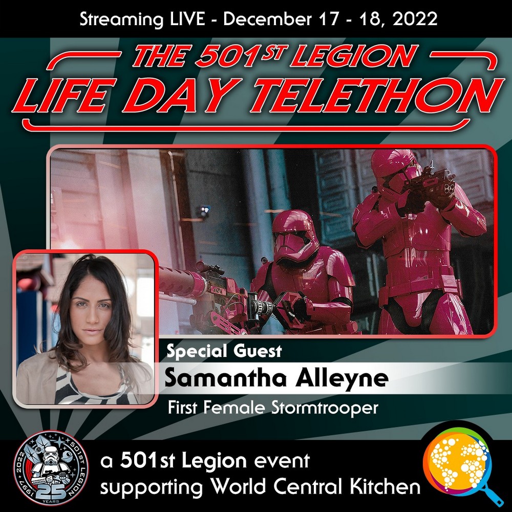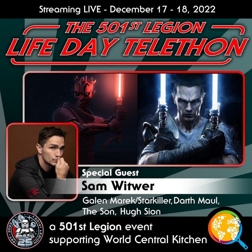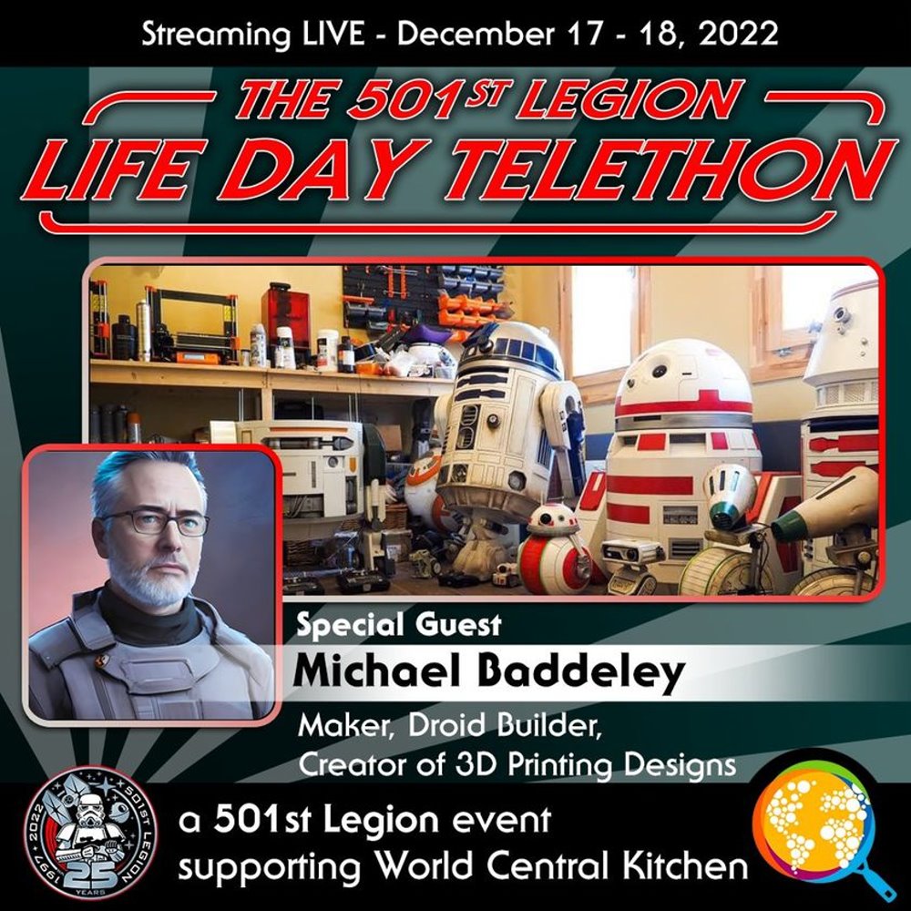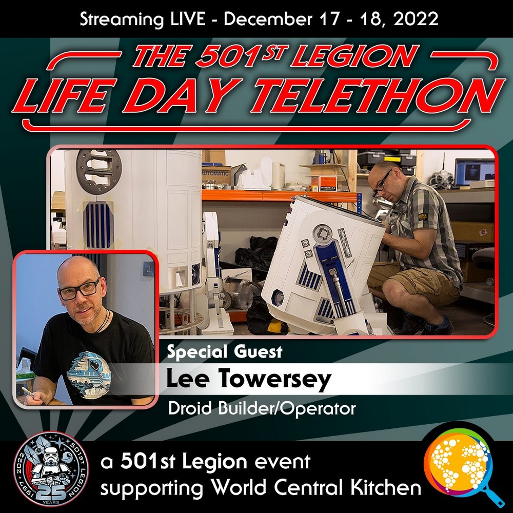Since 1st November and running through to 31st December the 501st Legion have been raising funds for World Central Kitchen, and on the weekend of 17th and 18th December they kick off their 2022 fundraiser, the 501st Legion Life Day Telethon. There are a lot of guests – a LOT of guests – and here’s a look at some of the stars involved in the event, including our very own Mark Newbold who can be heard at 11.00am UK time (6.00am Eastern) on Sunday 18th alongside Farthest From’s Dave Tree, Darth Revan designer John Gallagher and BB-8 performer Brian Herring on the In Our Stockings panel.
