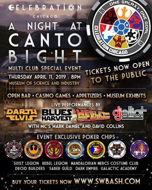 Tickets for A Night at Canto Bight: Multi Club Special Event are now on sale, but you’d better move fast. There are only (Order) 66 days to go and only (StarSpeeder) 3000 tickets available for this one-of-a-kind event taking place at the Museum of Science and Industry in Chicago on Thursday 11th April, and with a very special selection of guests being lined up you won’t want to miss out.
