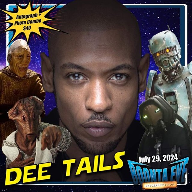 The team at Virtual Cantina bring good news. With Tait Fletcher forced to withdraw from the event due to a scheduling conflict, sequel trilogy and Disney Plus performer Dee Tails is announced to be attending Boonta Eve Special Edition Hollywood: Heroes of the Filoniverse on 29th July 2024 at Scum & Villiany Cantina in Hollywood, CA.