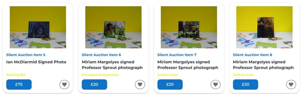 Items can be collected from their Edinburgh office, posted (which will need to be worked out depending on UK or international location), and the only items that canot be posted are the cardboard standees. So, have a browse, and add to the £900+ total raised already.