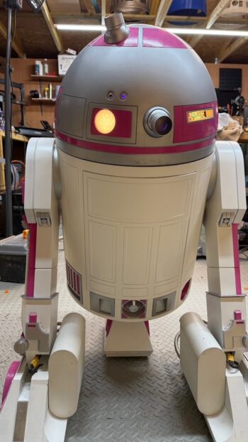 Body: The construction of R2-KT Scotland is 80% 3D printed, with other plastics, fibreglass, and metal involved in the physical structure of the droid to help with longevity. She will be fixed in a 3 legged mode. Although we may change to be made to manually fold into 2 legged mode. Doors and arms will be sealed shut and the operating system will be straight forward.