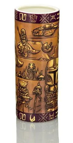 Experience all your favorite moments from Star Wars: The Mandalorian Season 1 in a whole new way. Standing at an impressive 8 inches tall, this ceramic mug features a raised relief with stunning tiki art. Turn the tumbler around to discover an array of characters and iconic elements from Mando’s journey. From Din Djarin’s clash with a Mudhorn to his travels with the adorable foundling Grogu, you will be reliving every memorable scene from the series. The 24-ounce tiki mug also features etchings of familiar iconography along the rim and base.