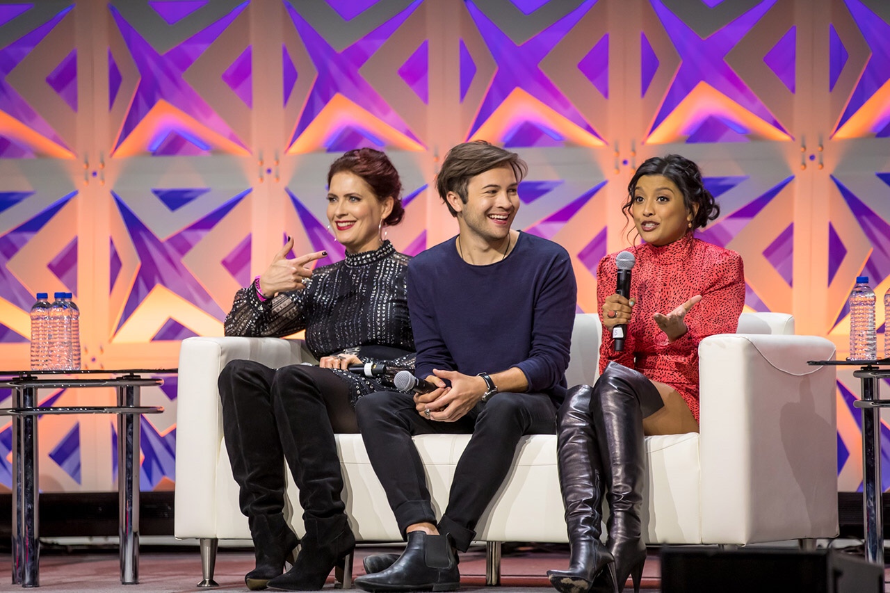 Host David Collins — who’s also the show’s sound editor — welcomed to the stage showrunner Justin Ridge, Executive Producer Athena Portillo, and Head Writer Brandon Auman, as well as voice actors Christopher Sean, Suzie McGrath, Scott Lawrence, Myrna Velasco, Donald Faison, and Bobby Moynihan to reminisce and to tease the show’s upcoming second season. Then attendees got an extra special treat: a private screening of the Resistance season two premiere and a teaser poster which included two pieces of amazing artwork!
