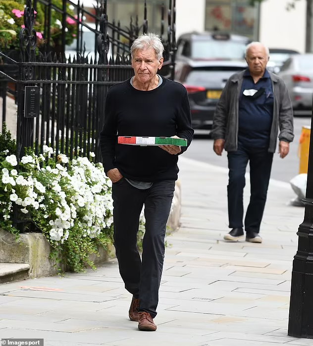 And Harrison Ford was relaxing during his time off as he stepped out to grab a takeaway pizza in Mayfair, London, on Friday.