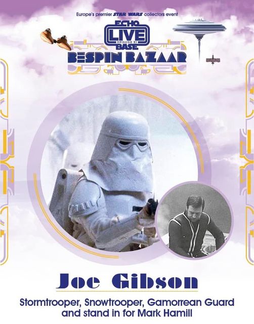 Joe Gibson is an English actor and stand-in who worked as a wet suit stuntman for Mark Hamill on Dagobah in the Empire Strikes Back and again as a stand-in for Mark in Return of the Jedi. He also played a Snowtrooper and a Stormtrooper in The Empire Strikes Back and a Gamorrean Guard and a Stormtrooper in Return of the Jedi.
