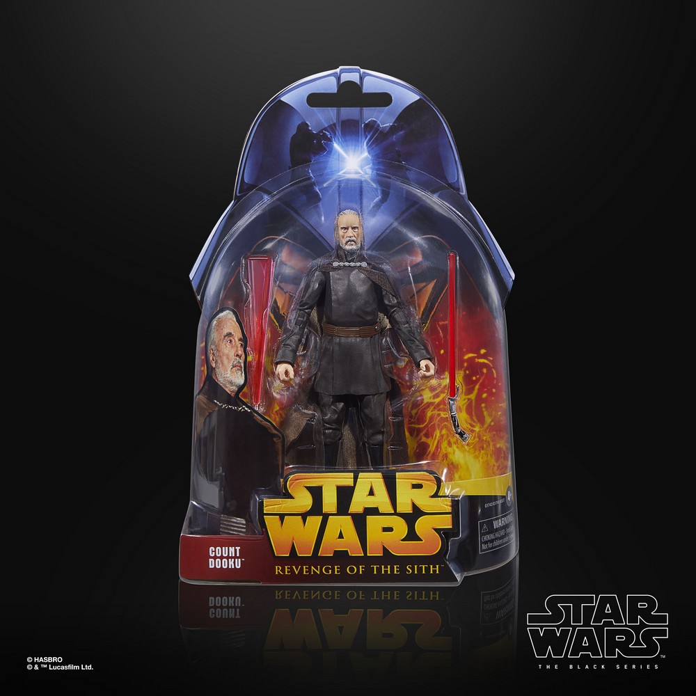 STAR WARS: THE BLACK SERIES includes 6-inch action figures, vehicles, and roleplay items from the 40-plus-year legacy of the STAR WARS Galaxy, letting fans create galactic scenes with a faithfulness to STAR WARS comic books, movies, and series. This STAR WARS action figure is detailed to look like Count Dooku from STAR WARS: REVENGE OF THE SITH. Comes with his signature Lightsaberâ„¢ and swinging FX. Display the figure on your shelf, in your office, or on your desk with nostalgic cardback packaging featuring commemorative artwork.