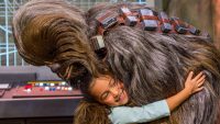 Staying clear of the menacing First Order, he made his way to see his faithful friend Chewbacca, who you can meet every day during Legends of the Force – A Celebration Star Wars at Walt Disney Studios Park. John commented “I think that it’s great because every time I’m filming with Chewie, I hug him as much as I can. It makes sense that everyone can experience this.”
