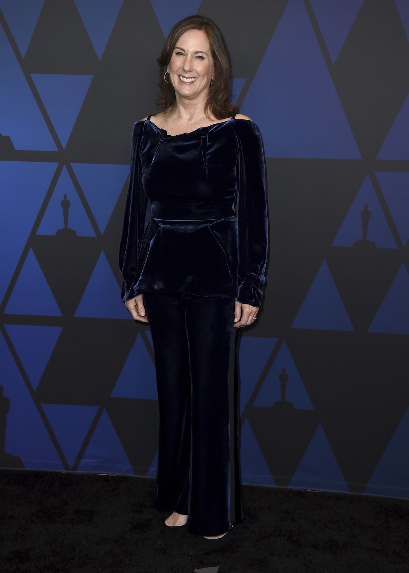 “The breaker of glass ceilings wherever she sets her sights,” Spielberg said of Kennedy, who now runs Lucasfilm. “She went from taking notes to taking over.”